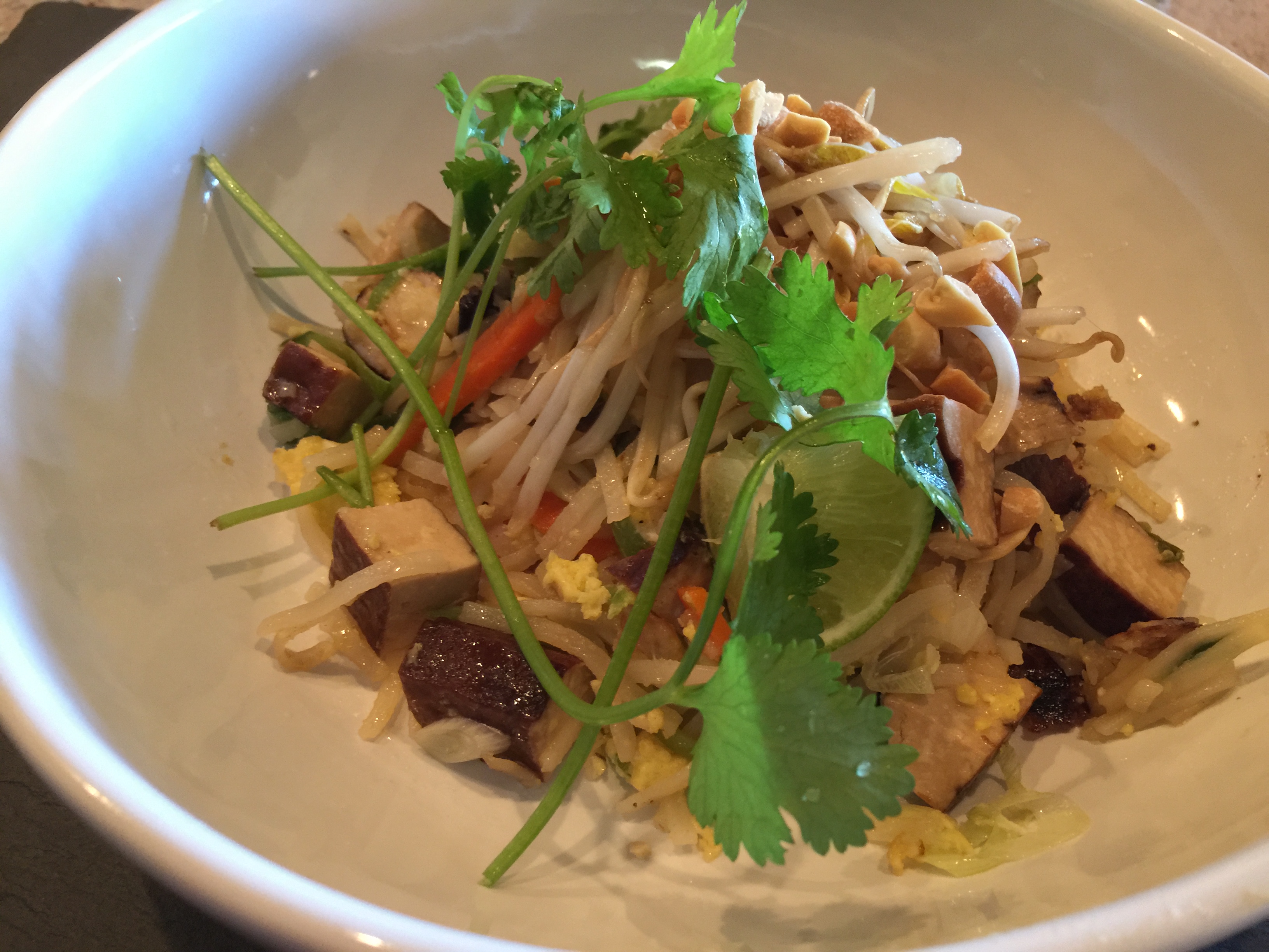 This pad Thai was semi-successful. I used dried tofu in place of the shrimp in the original recipe. That was a mistake. The tofu was so compacted that it did not absorb any of the sauce. Otherwise it was pretty good and I will try it again with firm or extra firm tofu. The recipe is from Food and Wine and you can get it here. Be sure to use a large enough pan to cook it in. Mine was a bit too small which made the mixing of components difficult.