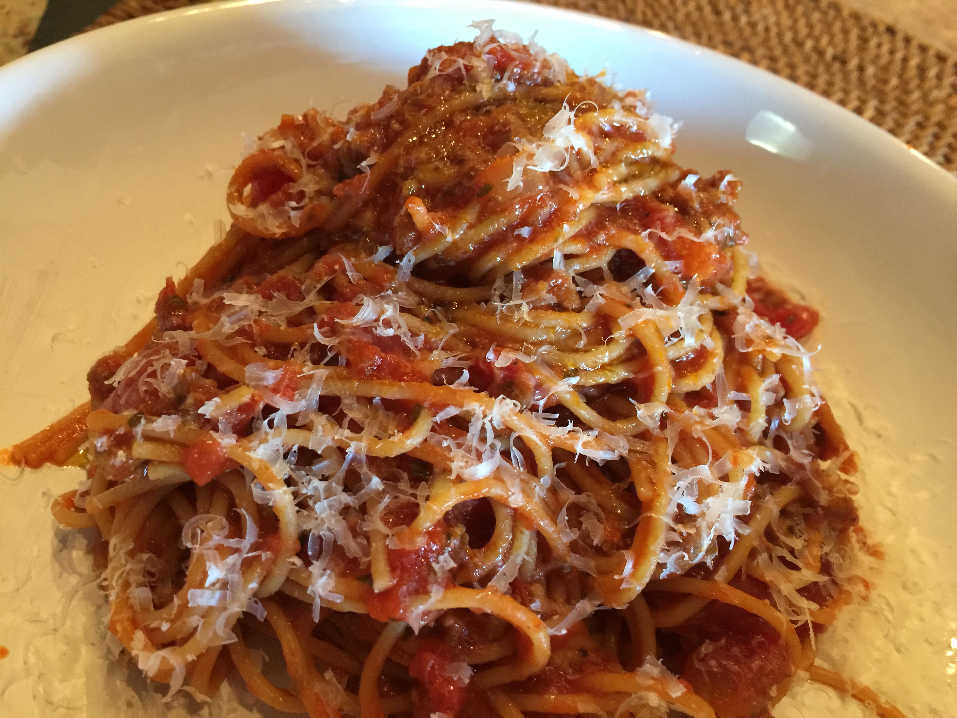 But there was spaghetti with meat sauce for dinner! I waited a whole week for this. Maybe the world would look sunnier if I ate it every day.