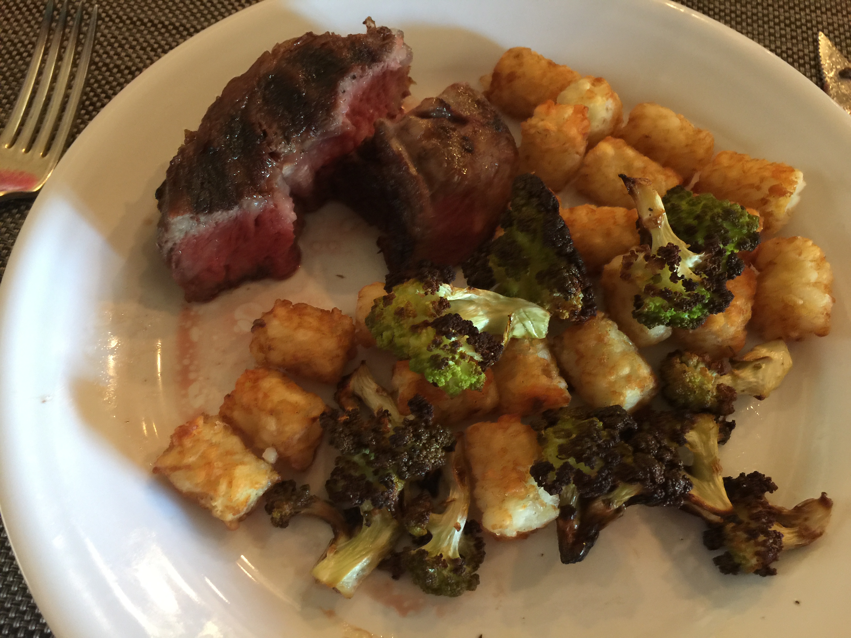 The last two dinners with our visiting family had some pretty high-end ingredients-dry packed scallops and prime ribeye cap steaks. Since we were serving children as well as our son, we made them in a not haute cuisine way. Tater tots were a prominent ingredient and some food was fried. The kids really like to eat sweets so these dinners fell mostly on deaf palates. I gave them macaroni and cheese again on scallop night. On our farewell dinner night they avoided the meat but did try the roasted broccoflower which they said was good. At some point they will want to try new things!