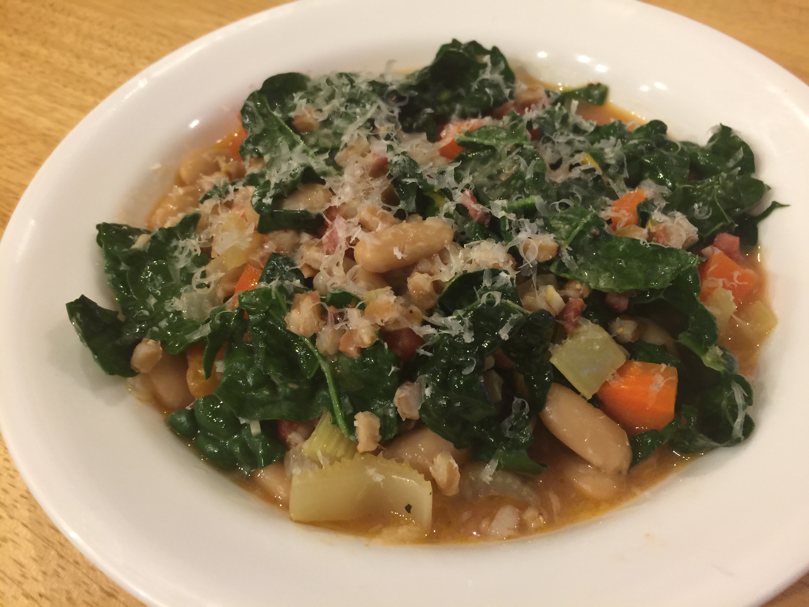 Here is a recipe that can be omnivorous, vegetarian, or vegan. It’s a mishmash of ideas from a few other recipes including Mark Bittman’s Tuscan Farro Soup form The NY Times Cooking site. I used my Instant Pot to make the farro. It’s a good way to keep the kitchen from getting hot.