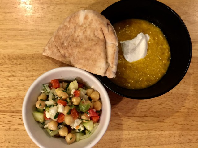 We had such a delicious lunch at the Khyber Pass Afghani Restaurant that I wanted to try to recreate it at home. Seems like there are a lot of different spellings for lentils-dal, dahl, daal- that I am just sticking with “lentils.” Our dinner consisted of the lentils, a yummy Mediterranean chickpea salad of chickpeas, feta, onions, and cucumbers (https://www.delish.com/cooking/recipe-ideas/a19885314/mediterranean-chickpea-salad-recipe/) and some warmed pita.
