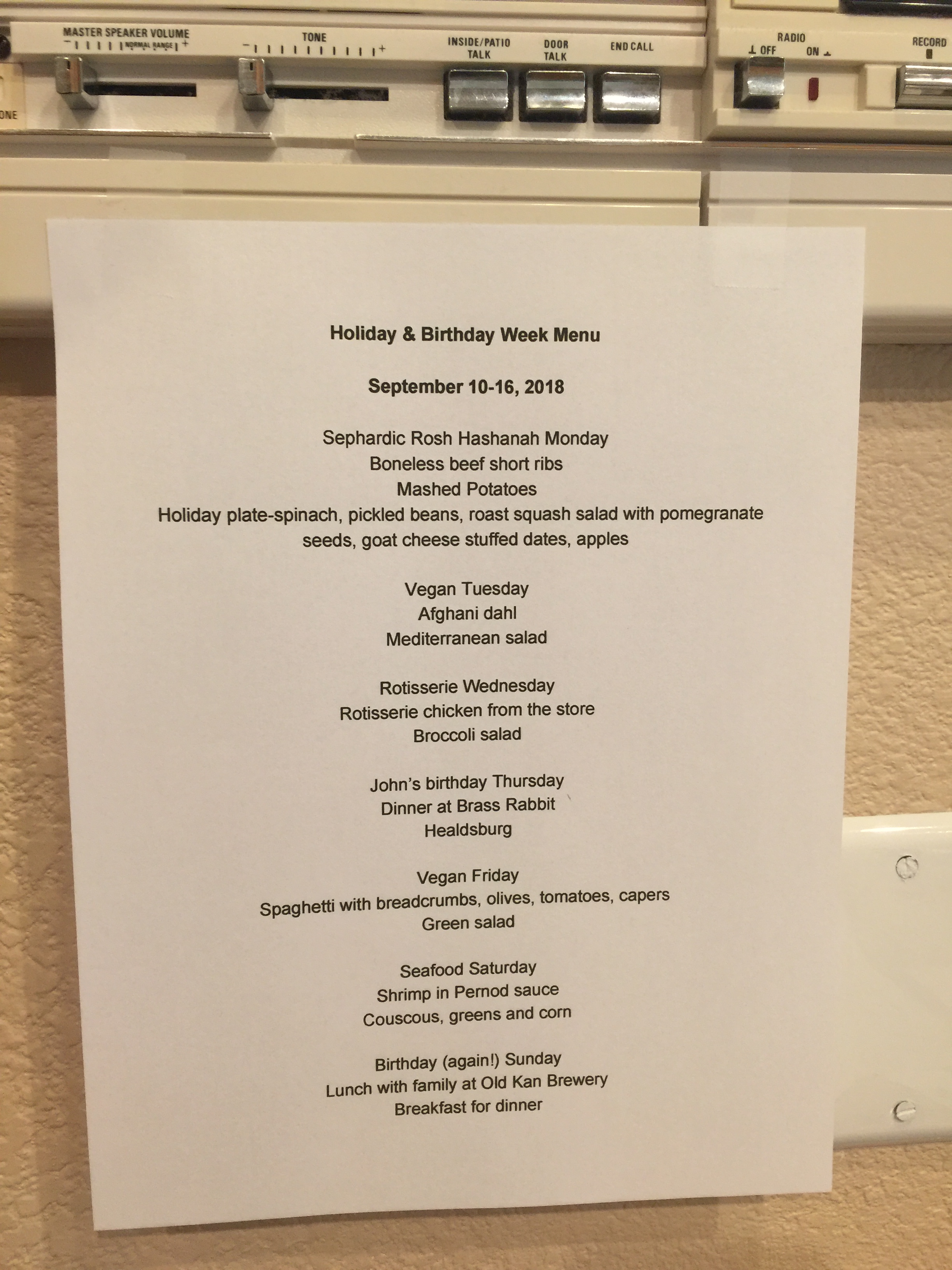 Here is the menu for this week which is hanging in my kitchen. We are doing a lot of celebrating this week!