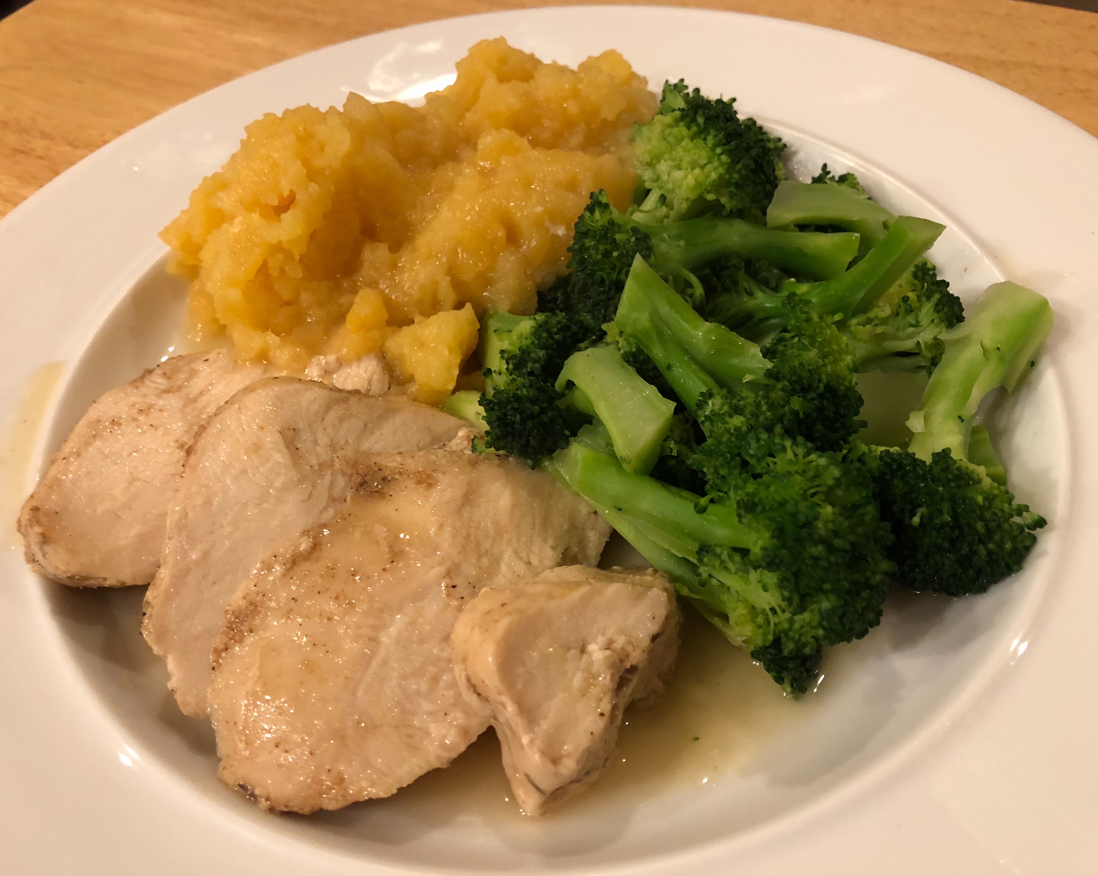 It being Monday and especially a Monday after a rather vigorous dining week, the natural choice is for Classic Chicken. John and I share a chicken breast that he sous vides and I make some rutabagas in the Instant Pot and some broccoli on the stove top. It feels like we are in control of our dining destinies again!