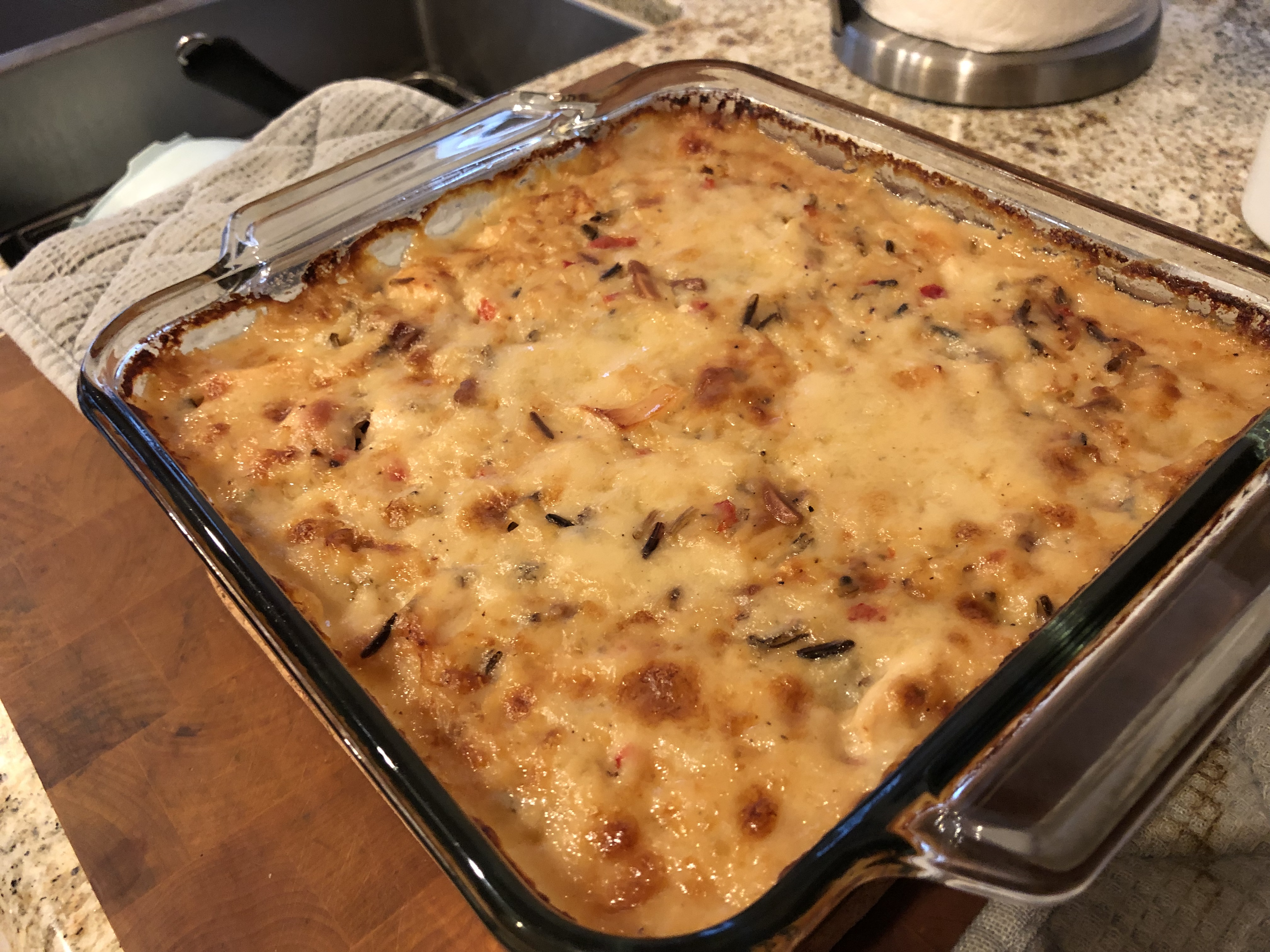 I have updated the recipe somewhat. We use a box of Near East’s Wild Rice and Long Grain Rice so it is not 100% wild rice. We also use fresh mushrooms, not canned and omit the green bell pepper. I usually serve it with a spicy peri peri sauce because it is kind of rich and bland. Today I make a vinegary cole slaw to go with it.