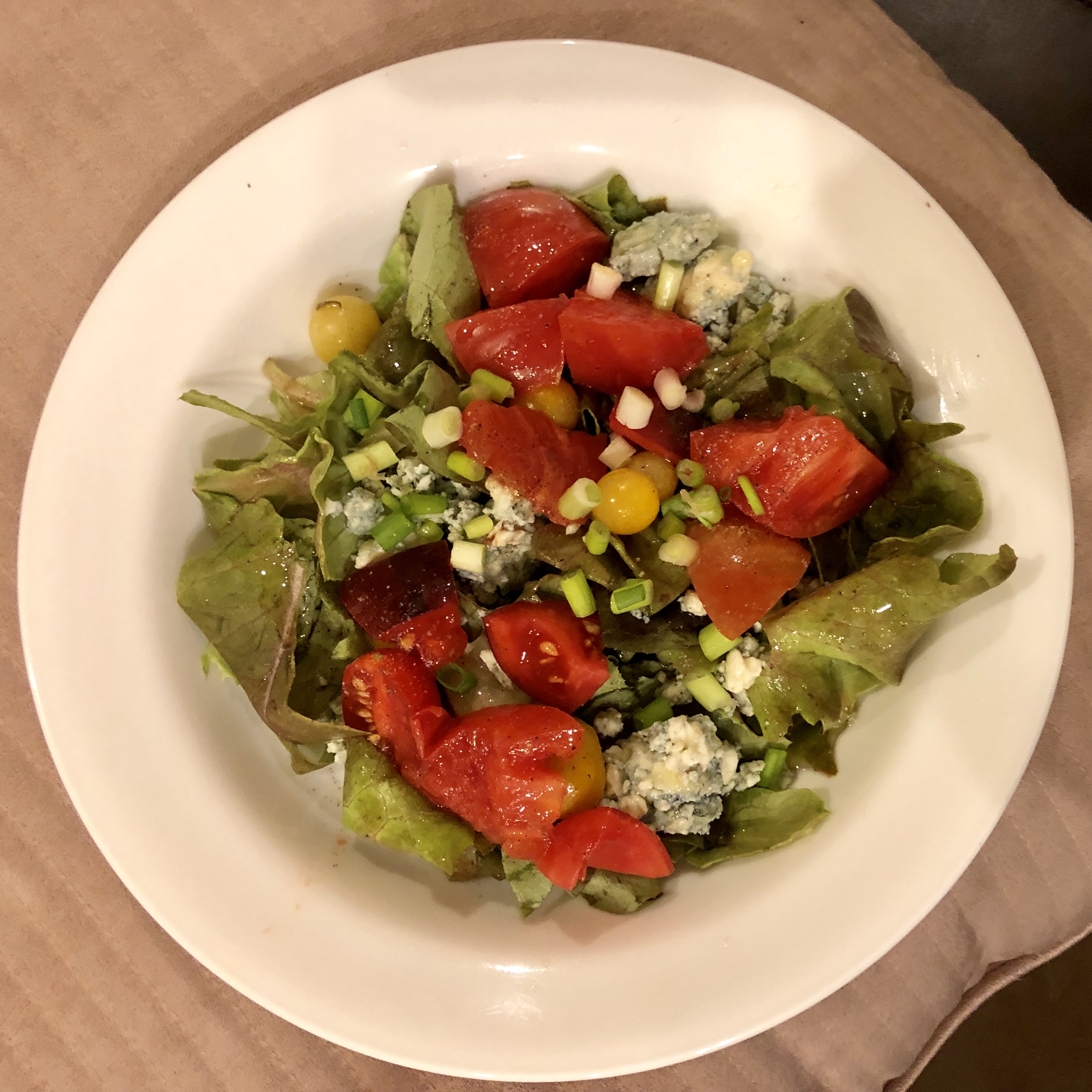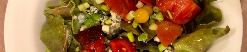 We are down to the last of our tomatoes from this year’s crop. To mark the occasion and as a preview to our upcoming trip to Italy I made a dress-your-own salad with oil and vinegar accompanied by a slice of pizza. This is often a go-to lunch when we are in Italy.