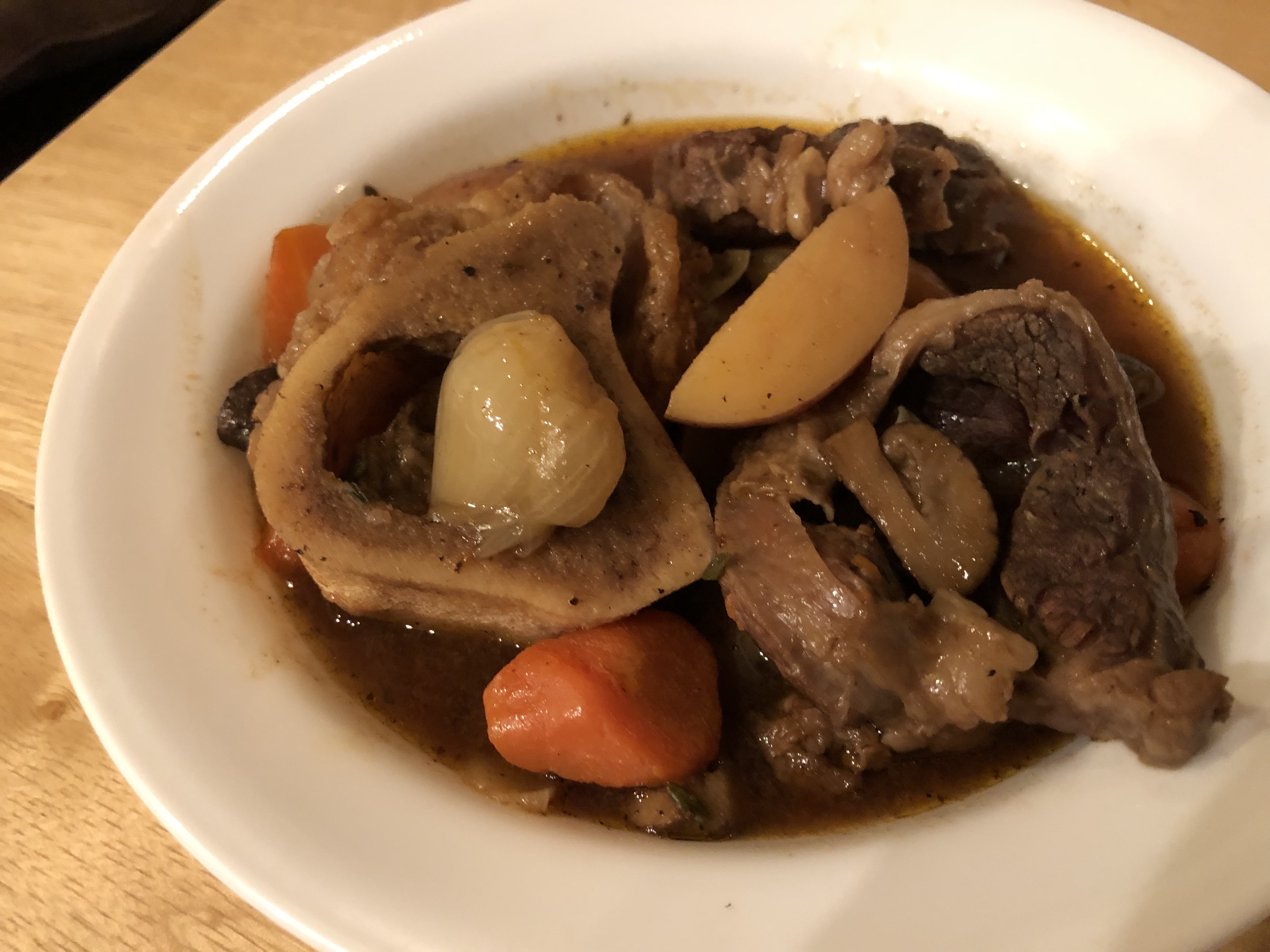 It turns out pretty tasty although I think I would like it with thicker gravy and a little more sweetness. Here is our not-to-attractive rendition. John says we should make it again and I agree but with the boneless beef short ribs instead.
