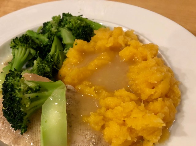 In an attempt to make today’s post more interesting, I will report that I read an article about how rutabagas are the perfect vegetable for making spaghetti type noodles. And I have just spent the last 15 minutes trying to find the article to no avail. So no link, sorry. Our rutabagas are merely boiled and mashed. The broccoli is just cooked in a little water and then finished with butter. Along with a ho-hum boneless skinless chicken breast this is a pretty boring dinner. May I make a New Year’s resolution in February? If so, I resolve to make more interesting chicken dishes!