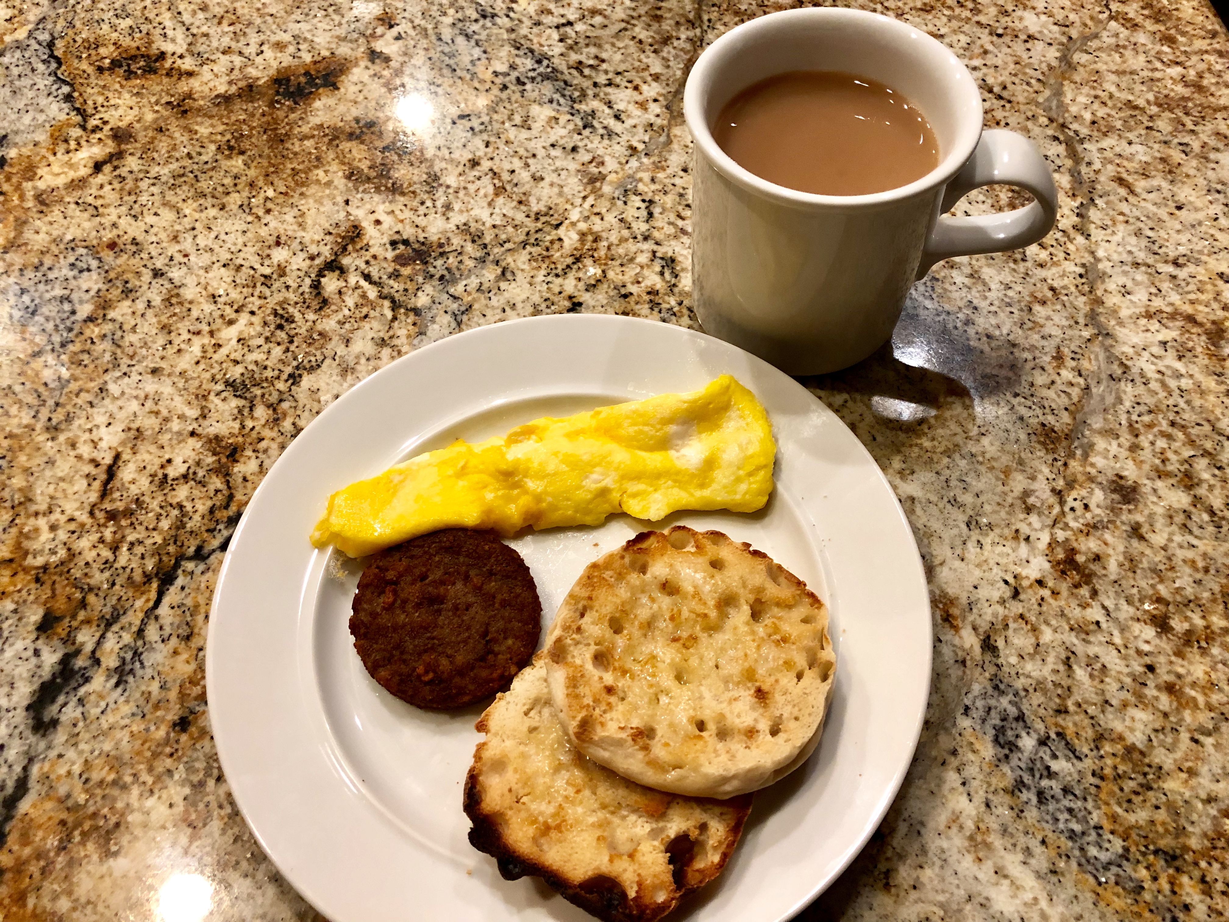 As it often happens, life interrupts my meticulous menu planning. This came in the form of going out to lunch on both Friday and Saturday leaving John and me unhungry and not motivated to make much of a dinner. So out goes spinach and mushroom frittata and Kenwood shrimp and they are replaced by chicken sandwiches made from the leftover Costco chicken and a one egg omelet with a vegetarian sausage pattie and an English muffin.