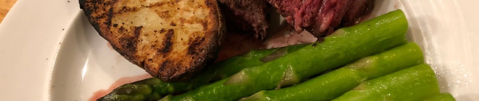 John sous vide the steak at 125F and then hit it on the grill for about 3 minutes on each side. We agree this morning that it needed to be a touch more done and he will adjust the water temperature upward on our next steak foray. Nonetheless it was really good. Since we do not eat red meat very often splurging on prime beef from Costco is a pleasure we permit ourselves.