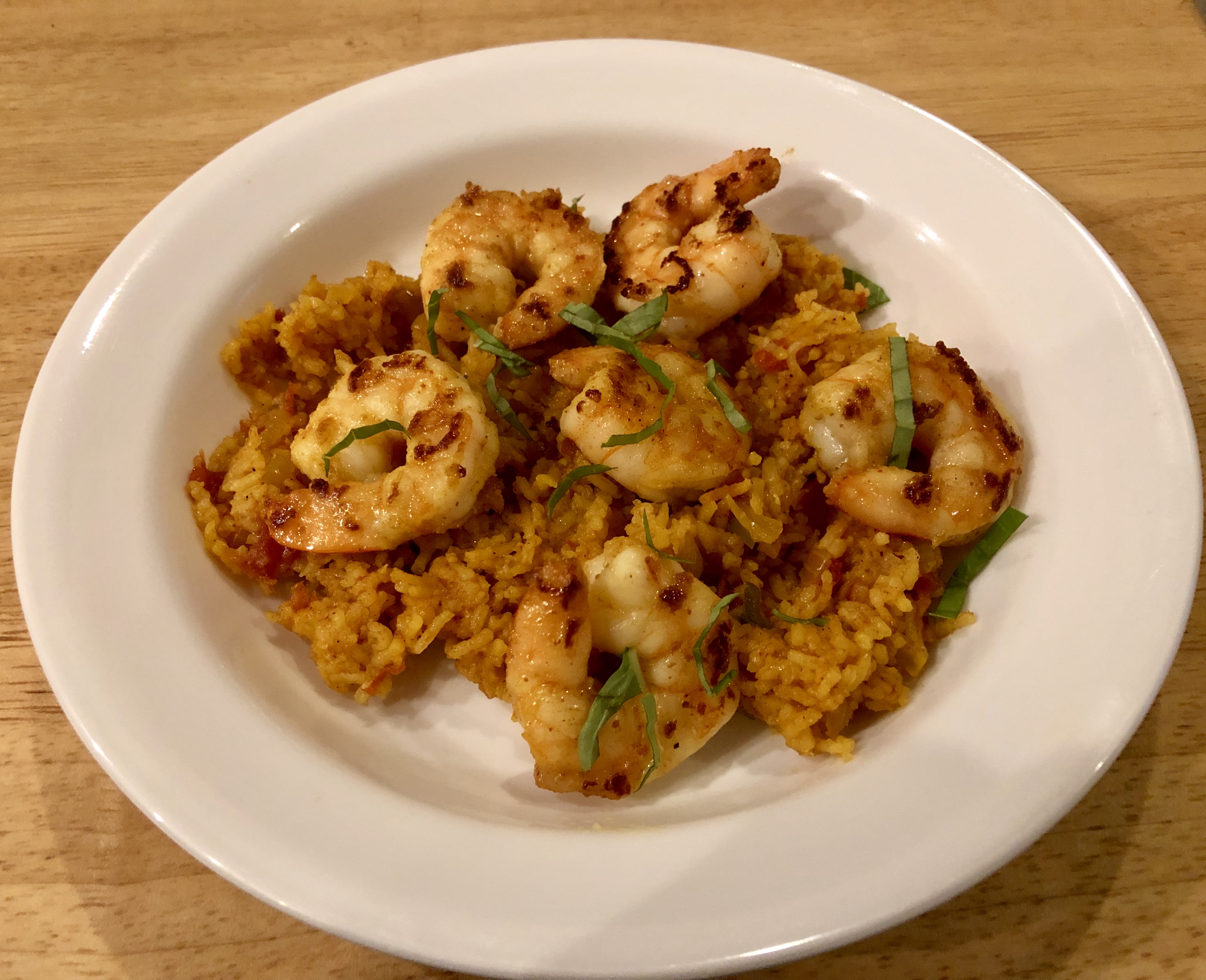 For dinner we made shrimp biryani by making the rice with its tomatoes and seasonings in the Instant Pot set on the rice setting and cooking seasoned shrimp separately on the stove top. We have tried putting the shrimp in the Instant Pot with the rice but the pressure cooking is too much for them and they come out overcooked. It means we dirty an extra pan but the results are much better.
