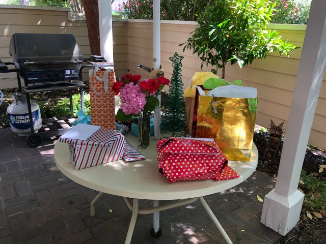 Since we were off in Italy over Christmas with our adult children, we never had a chance to celebrate with the grandkids. We had this situation arise once before and found that having Christmas around the Summer Solstice was an excellent time to get the family together for some presents and a cookout!