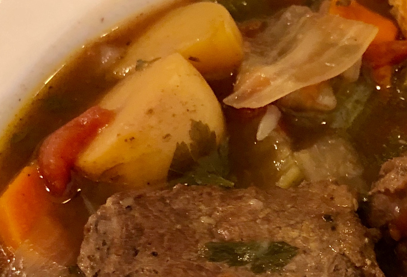 Here’s what we had left of our original beef stew – one piece of meat, a couple of potato pieces, lots of carrots, not much celery, and plenty of gravy.