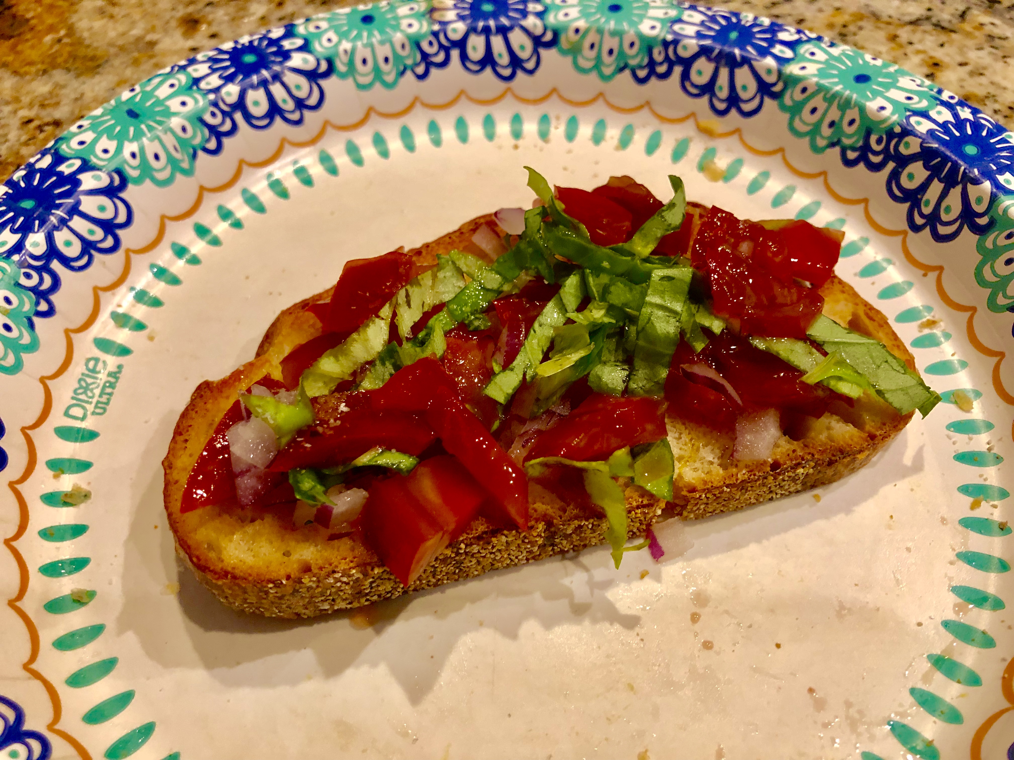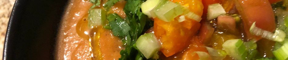 Also on the menu was “Best Gazpacho” adapted from the NYT Cooking site. Except for making toast, there was no cooking tonight!