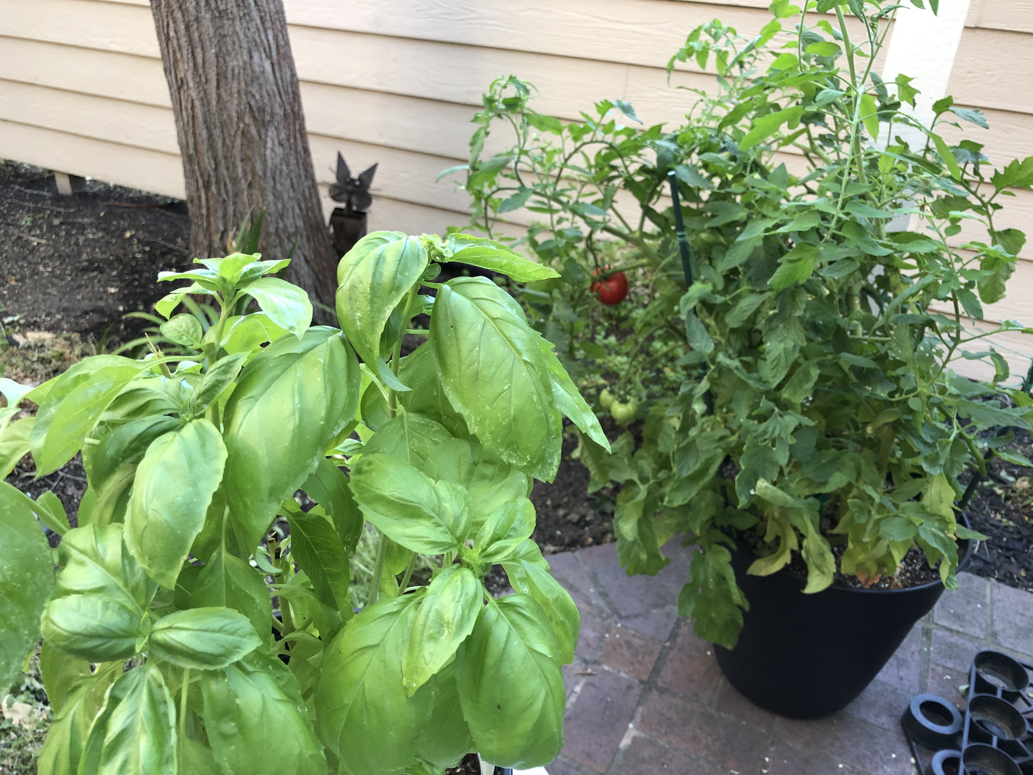 One of the great thing is that this is so inexpensive to make. I used one half of $2.99 pizza dough, one half of $3.99 mozzarella and probably $.50 worth of sauce and condiments. My basil plant has already paid for itself. So this is a $4 pizza! What a deal!!