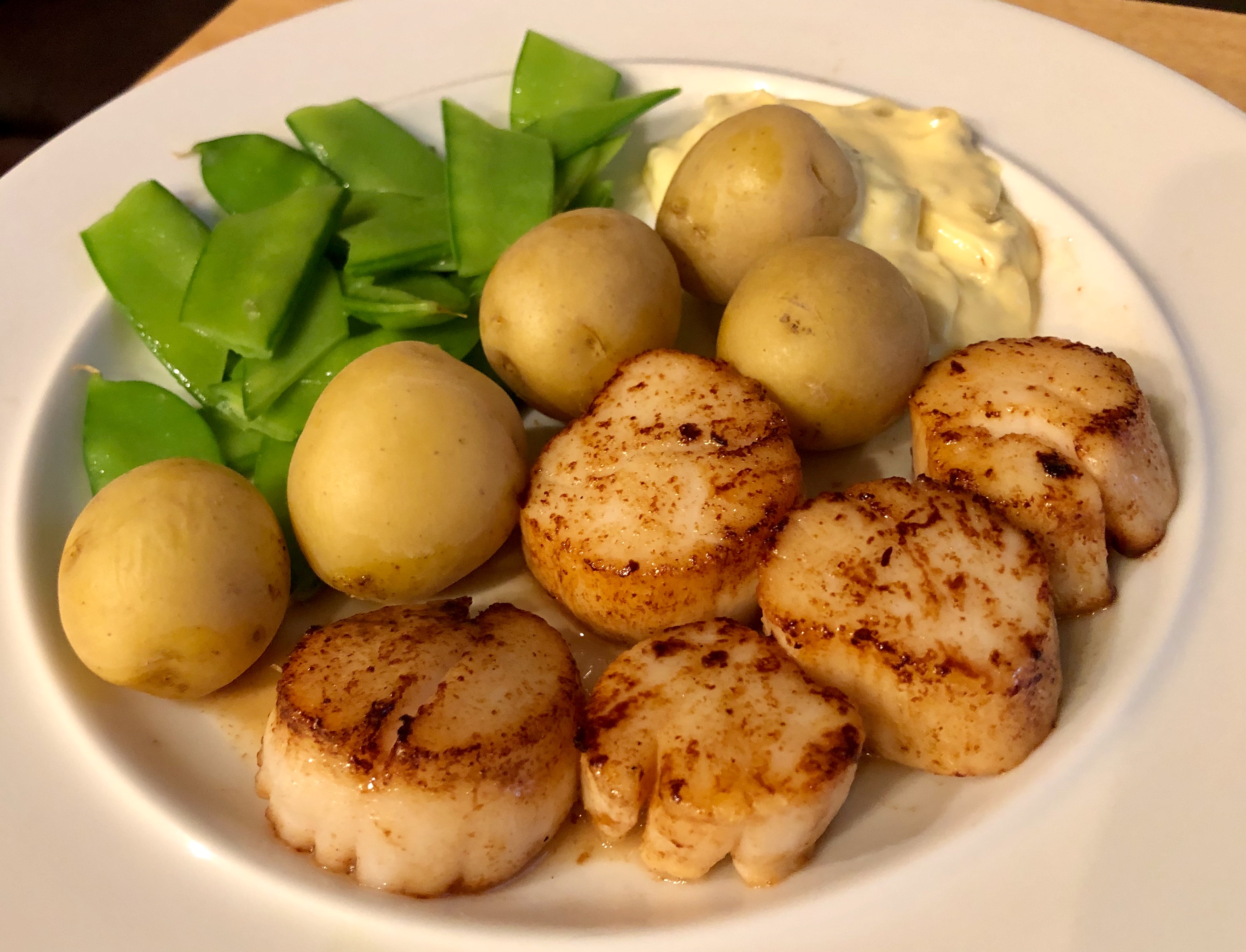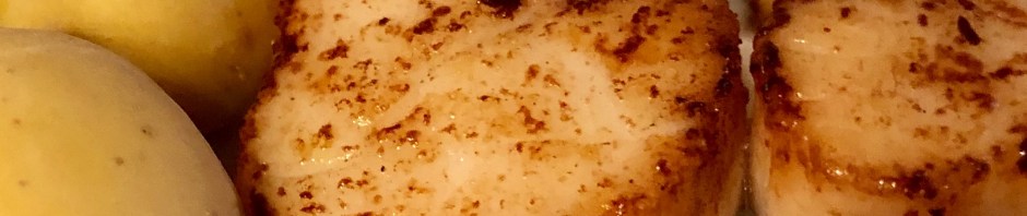 Except maybe for the clean-up there is nothing faster, simpler, and more delicious than seared scallops. John and I have to time everything to be basically done before he puts the scallops on since they only take a couple of minutes in a hot, cast-iron frying pan cooked in oil and butter.