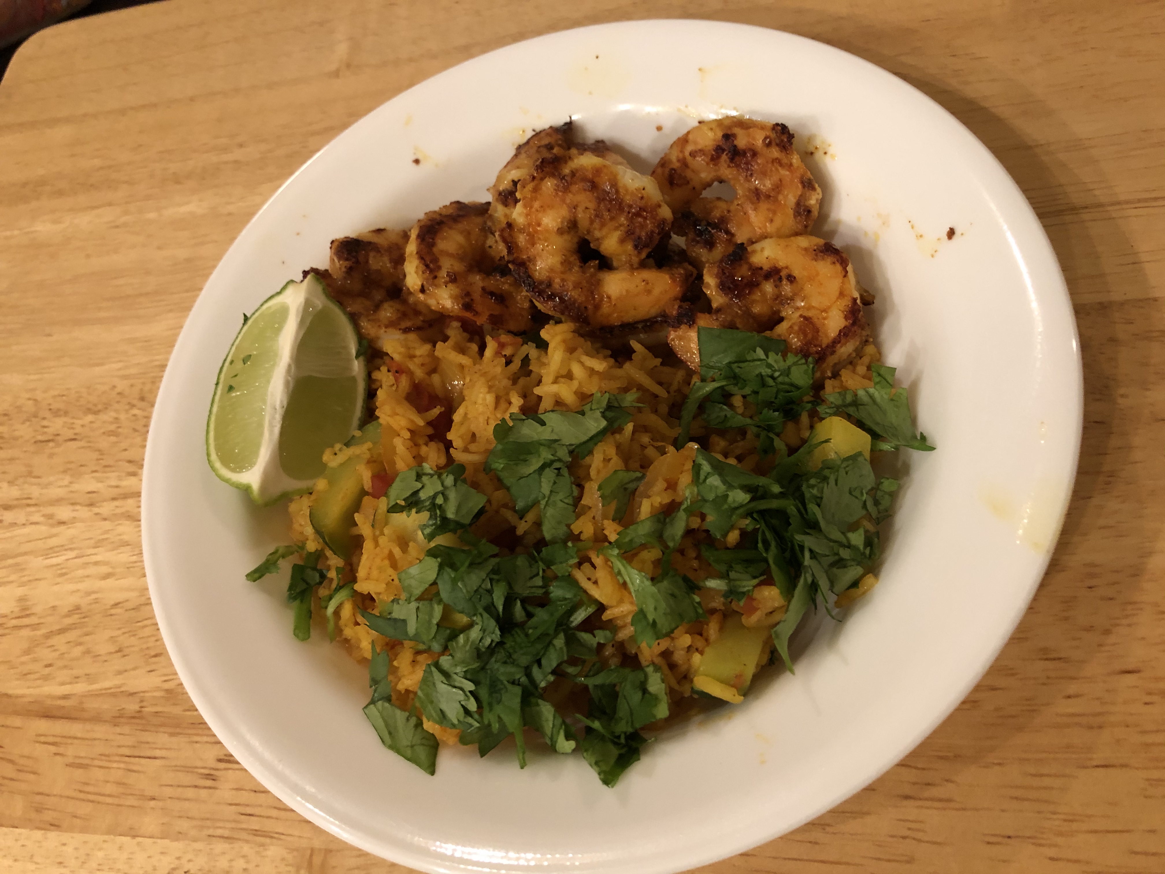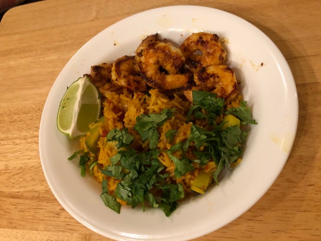 The recipe I followed for this was supposed to be totally an Instant Pot meal. But when we tried it all in the Instant Pot the shrimp was totally overcooked. So we made this dish in two pots – the Instant Pot for the rice and vegetables and a saute pan for the shrimp.