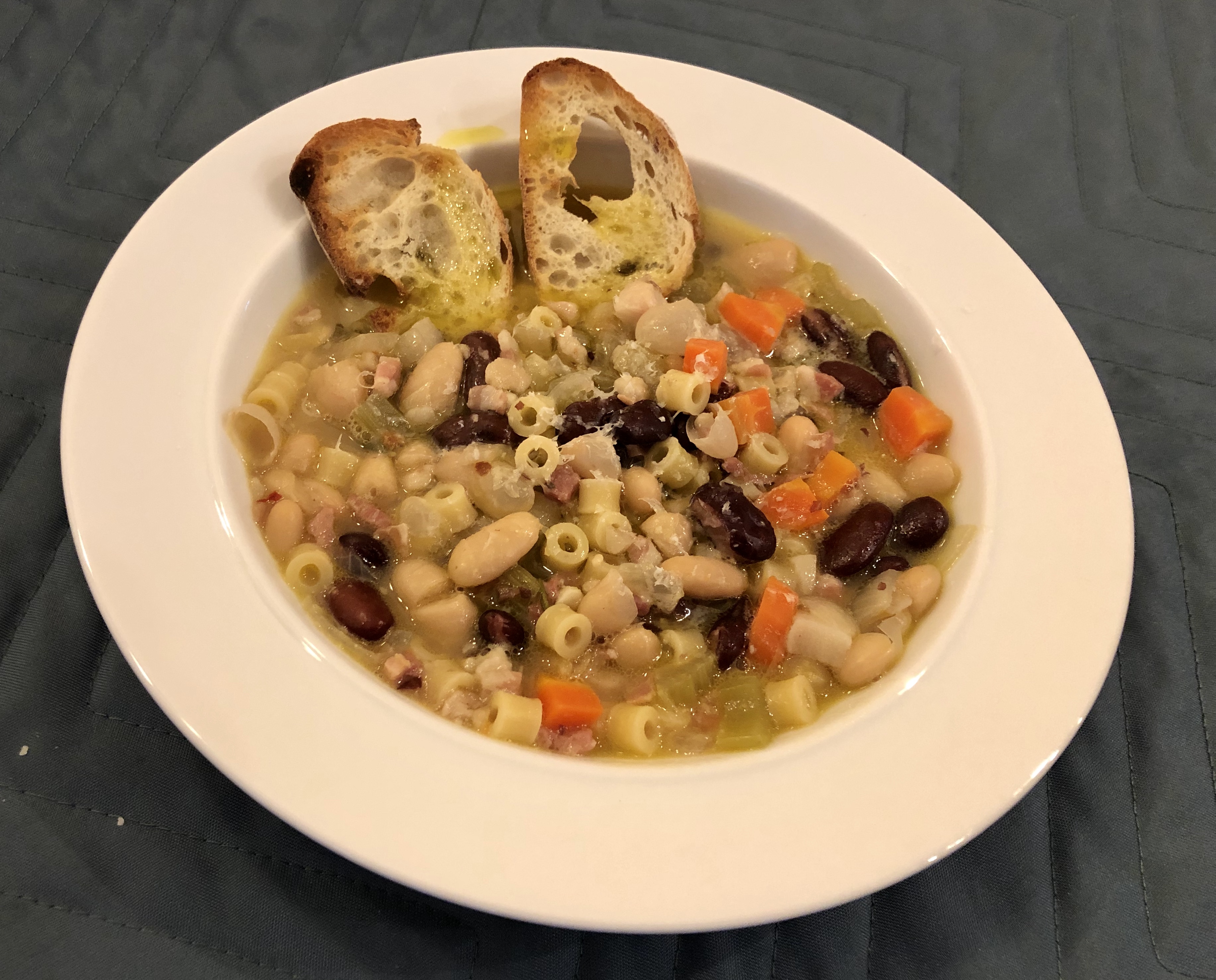 It started innocently enough enough with pasta fagioli. Of course I needed to buy some good Italian bread and red wine to go with it. And I needed to finish it with Parmesan cheese and olive oil.
