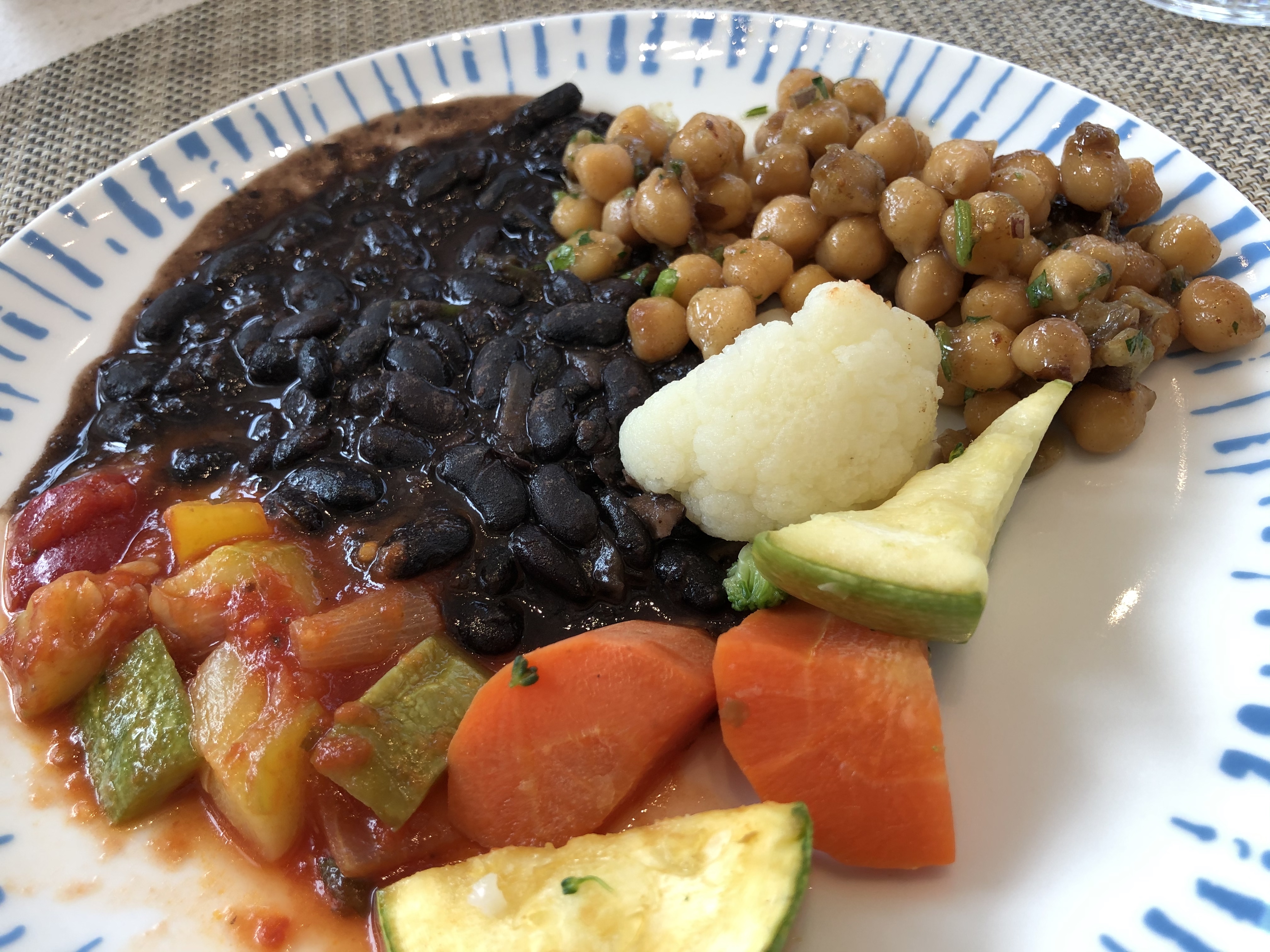In case you are wondering about whether there are vegetarian choices on a cruise, I have found that Viking, especially at lunch, has a lot of vegetarian choices. Every day there are usually two types of rice, always pasta, and potatoes. Sometimes farro. Then there are a whole array of vegetables to pair with these. Today there were black beans, some delicious chickpeas with figs, eggplant in a spicy ratatouille, and cabbage in soy sauce to name a few.