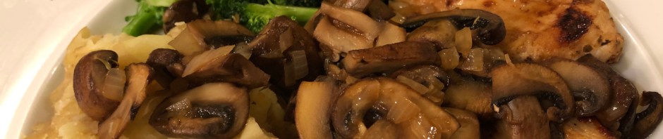 Tonight we had an upscale version of our usual chicken, starch, vegetable dinner. The sauce that John made for the chicken had sauteed mushrooms, Marsala wine, chicken stock, and finely diced onions in it. He flamed off the alcohol and used the liquid to deglaze the pan. He added 2 teaspoons of butter to it at the end. It was yummy. I steamed some small new potatoes and then smashed them so they would soak up the sauce. I cooked the broccoli in a small amount of water. Our dinner was a nice change from our usual chicken fare.