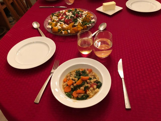 We had old out-of-town friends whom we have not seen for a while over for dinner last night. I made my chickpea stew and a fabulous blood orange and roasted golden beet over hearty greens salad. I served this with a crusty French loaf. What’s not to like?