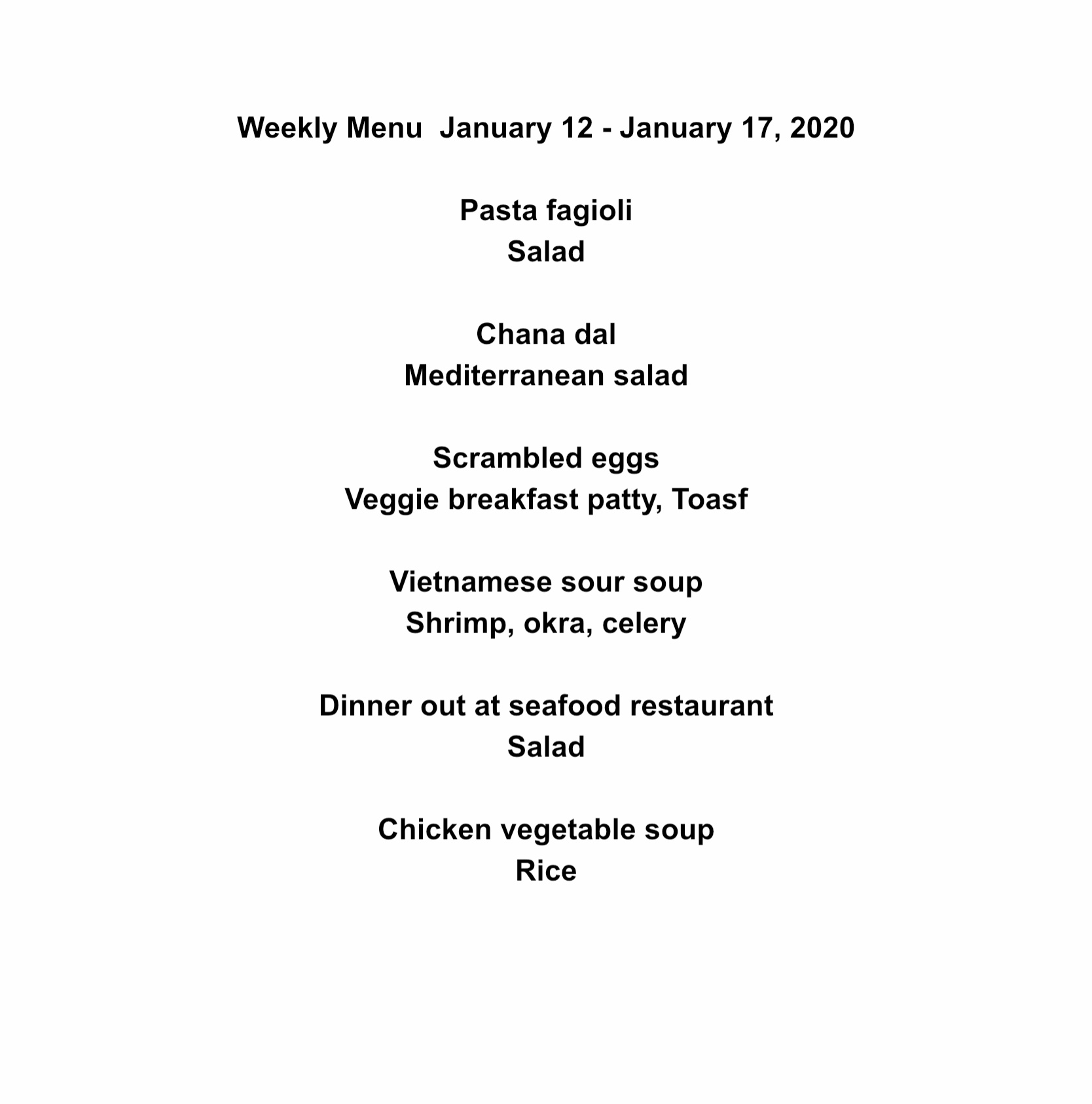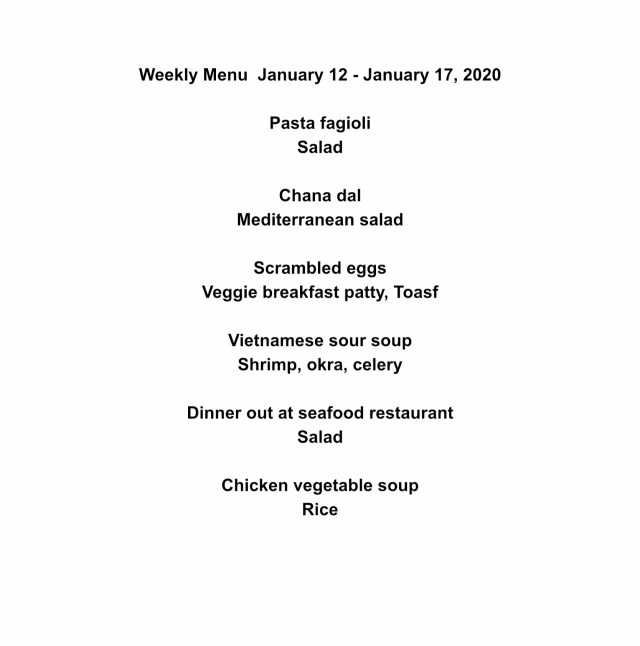John and I did not totally stick to the menu last week so we are adding the eggs and pasta fagioli to this week’s menu again. There are a few soups and stews this week because I am going away for five days starting on Saturday and I wanted to leave some leftovers for John to eat. After all who will he have to cut up all the vegetables if he wants to make something new!?