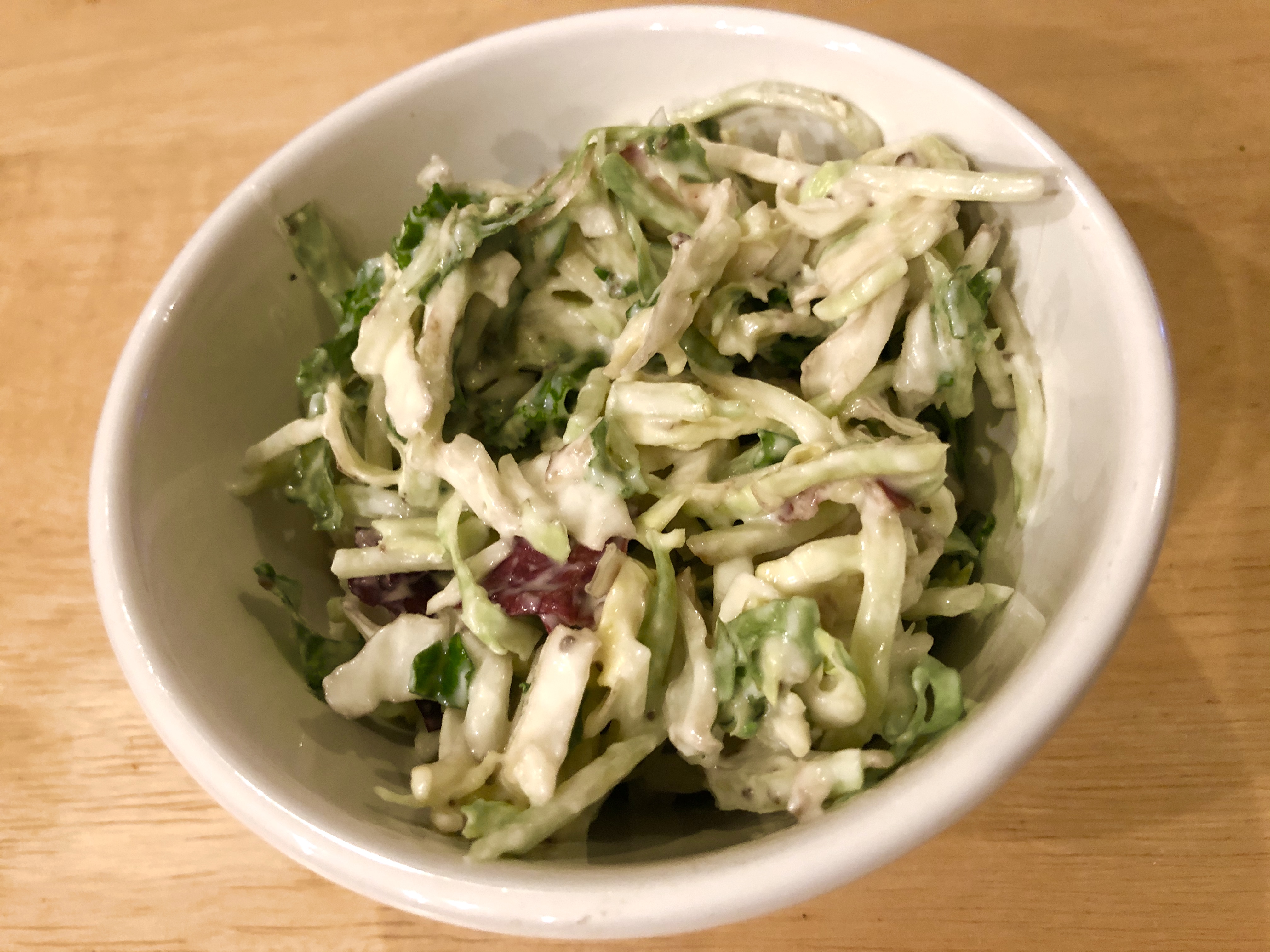 We we’re having our meatloaf with new potatoes and cole slaw but the turkey loaf took so long to cook that we ended up eating the cole slaw first. I keep the calories low on the coleslaw dressing by using equal amounts of light mayo and a Greek yogurt along with a little Dijon mustard, and cider vinegar. It is seasoned with salt, a little sweetener, and celery seeds.