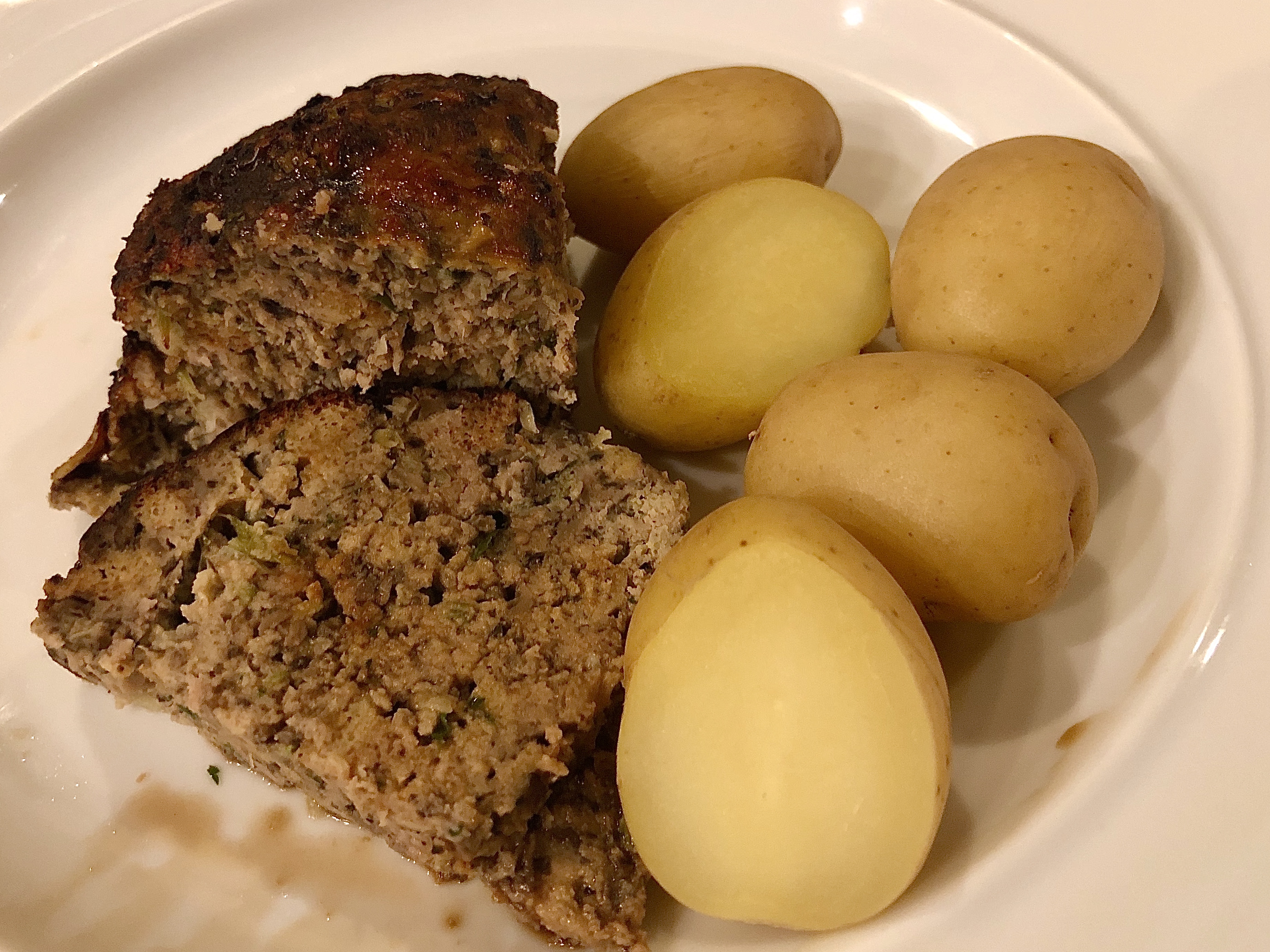 I tried all of my usual tricks to make this turkey loaf better but it is still a far cry from my beef meatloaf. I added abound 12 oz. of sautéed mushrooms, Worcestershire sauce, and even fish sauce to try to up the umami but it still came out rather insipidly sweet. I think ground turkey is not too bad as a ground beef substitute in stuffed peppers, chili, or spaghetti sauce but there is just not enough other flavors in meatloaf for it to stand in.