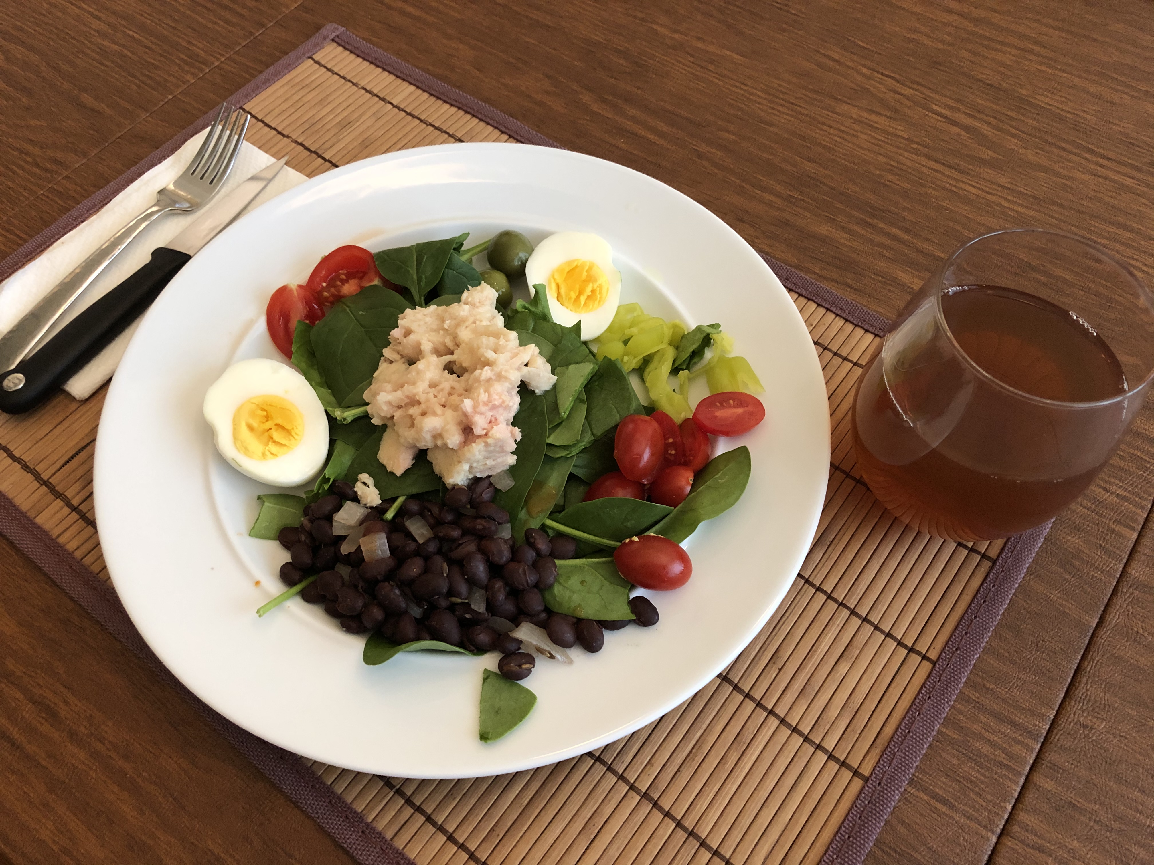 This is my second go at a Nicoise Salad. It is so colorful and a delight to eat. I subbed in black beans for a green vegetables and used spinach instead of traditional salad greens. John and I ate our lunch in the dining room with no cell phones (except for taking a picture) or iPads. Lovely.