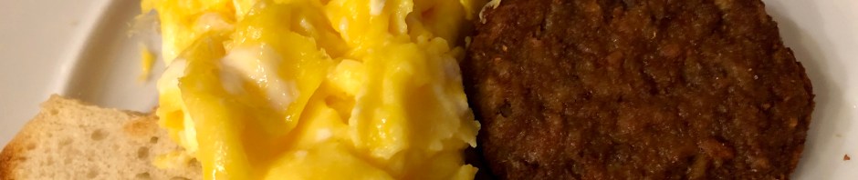 BreakfastĀ ForĀ Dinner, it is what we eat every Sunday night for dinner. John usually makes himself an omelet but I stick to soft scrambled eggs, a veggie breakfast patty, and toast. A special bonus today is that our daughter has made a freshly baked loaf of bread! Canāt think of what to make for dinner? Try BFD!