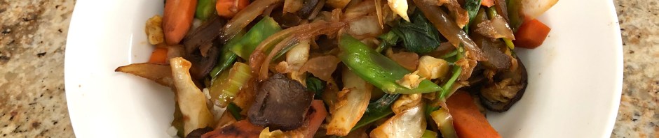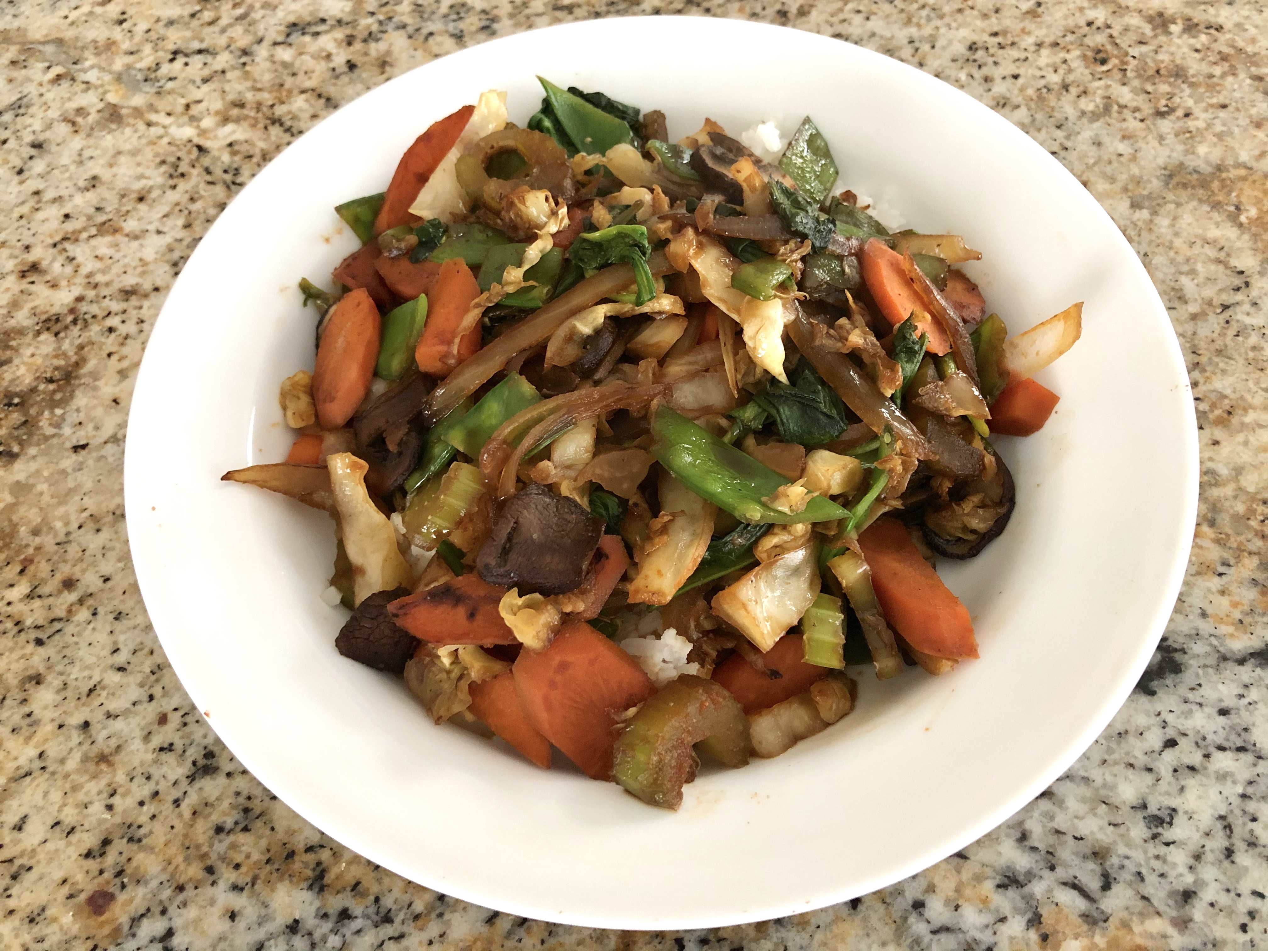 I am not a big fan of salad. It is a pain in the neck to construct and then you have to make salad dressing to have it be palatable. I much prefer my salad in its heated version – vegetable stir fry. Yes, I still have to cut up vegetables plus I have to cook it but the end product of warm vegetables over some leftover rice is so much more filling to me. A spray of olive oil for the pan and seasoning with soy sauce and sriracha adds flavor not fat. My stir-fry for lunch today consists of onions, mushrooms, carrots, celery, cabbage, snow peas, and spinach. So healthy!