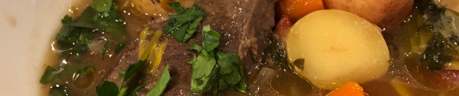 We are using up meat that has been in the freezer for more than 6 months. I think that these boneless beef short ribs are the last ones. Making a beef stew in the Instant Pot is really easy and relatively quick. Season the meat and leave it in fairly big chunks so you don’t have to keep turning it over as you sear the beef on the Sauté function. Add some beef stock, a can of tomatoes, onions, potatoes, carrots, and celery. Set the Pressure cook time for eighteen minutes and when it’s finished let the pressure drop naturally for 10 minutes and then release the rest. Make a slurry of a little gravy and your favorite thickener to give the gravy a bit more viscosity. Voila! You’re done in around 45 minutes (mostly hands off cooking.)