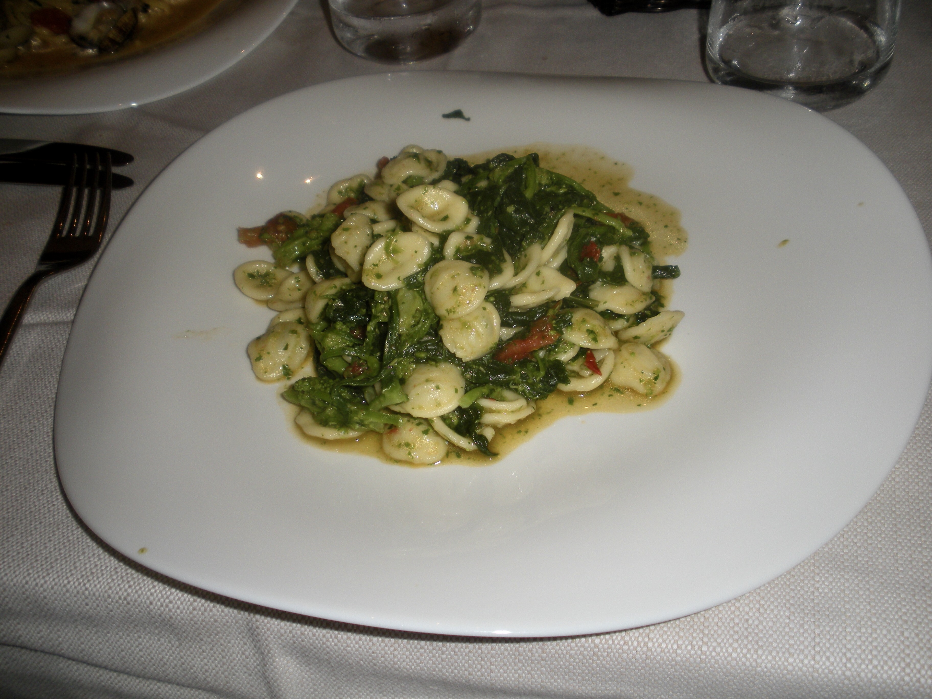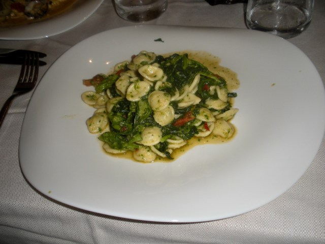 Today we were taking a culinary trip down memory lane. On October 29, 2011, John and I had lunch in Bari, Italy at Giampaolo. This has become a favorite city and favorite restaurant of our family over the years since. In fact we had reservations there for our daughter’s birthday this year. Alas, we were unable to go due to the pandemic. My first course was orecchiette with mustard greens, a regional dish.