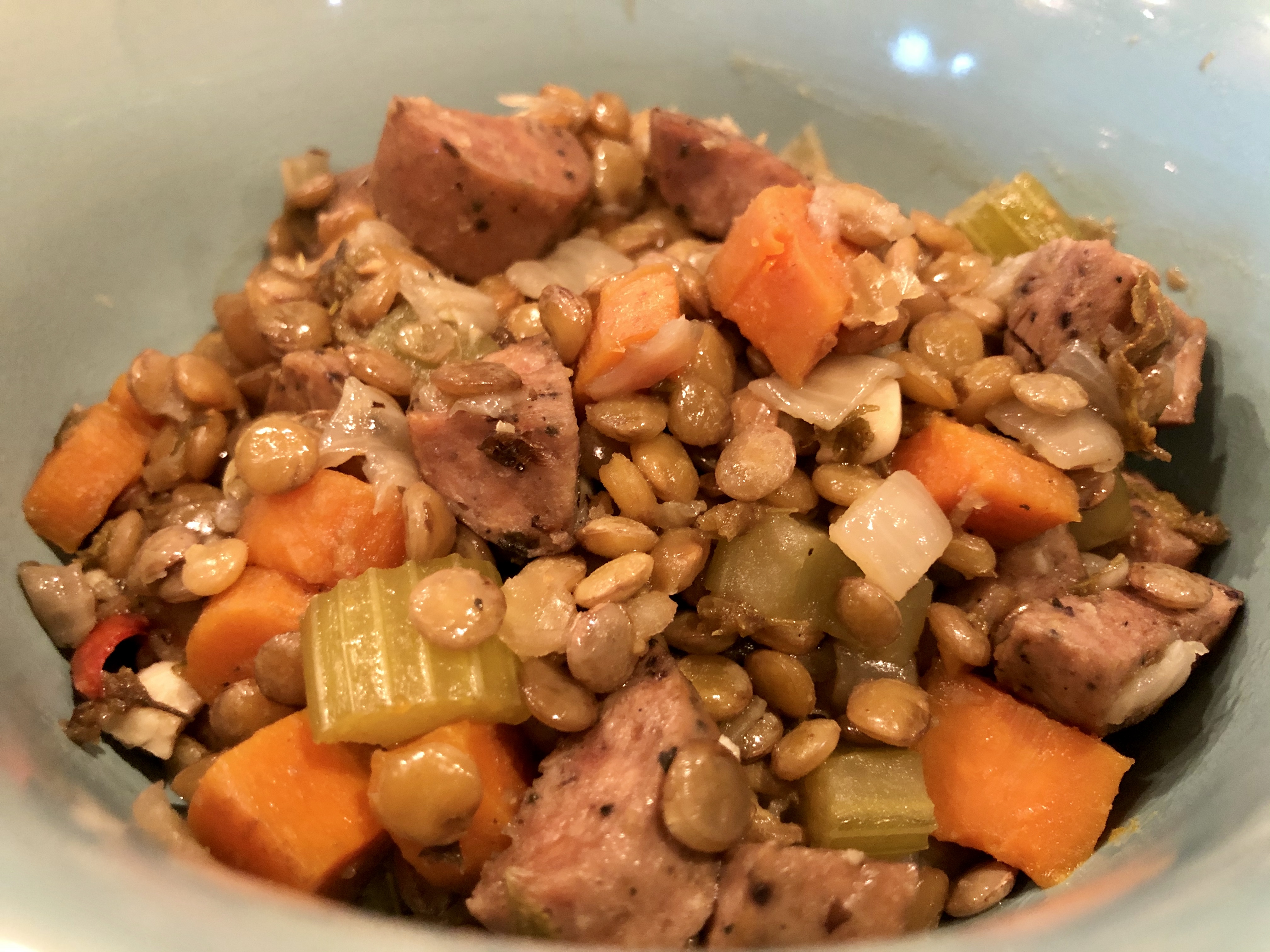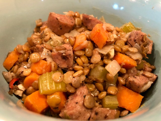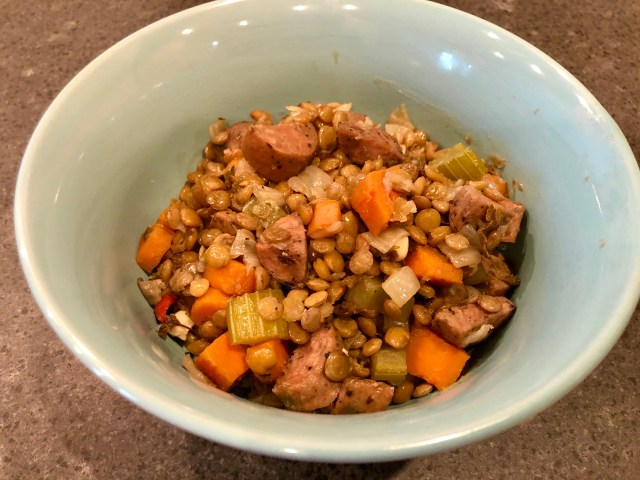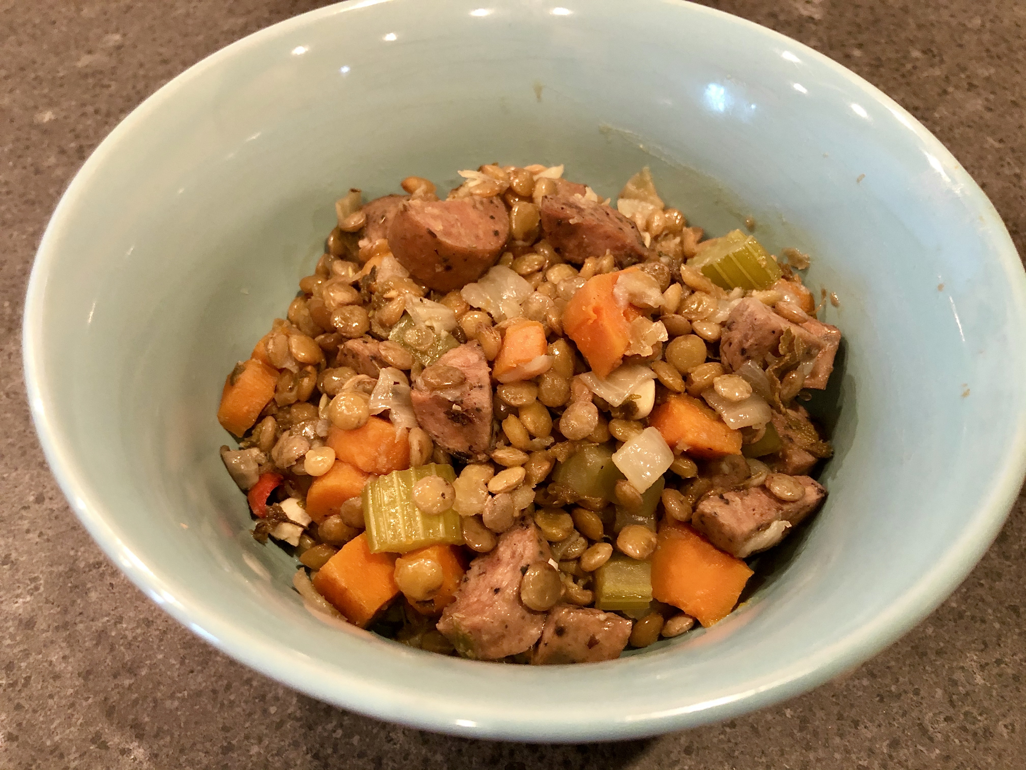 Although we are trying to convince ourselves that we are on a “vacation” and not running away from fire and smoke, I still want to eat in a healthy manner. Because of the pandemic and my diet, dining out is not a good choice. But cooking in a strange kitchen is hard! The A/C in the kitchen blows across the gas cooktop making it difficult to get a constant heat source. The lentils I cooked tonight cooked at least twice as long, absorbing the cooking liquid but not ever really softening.