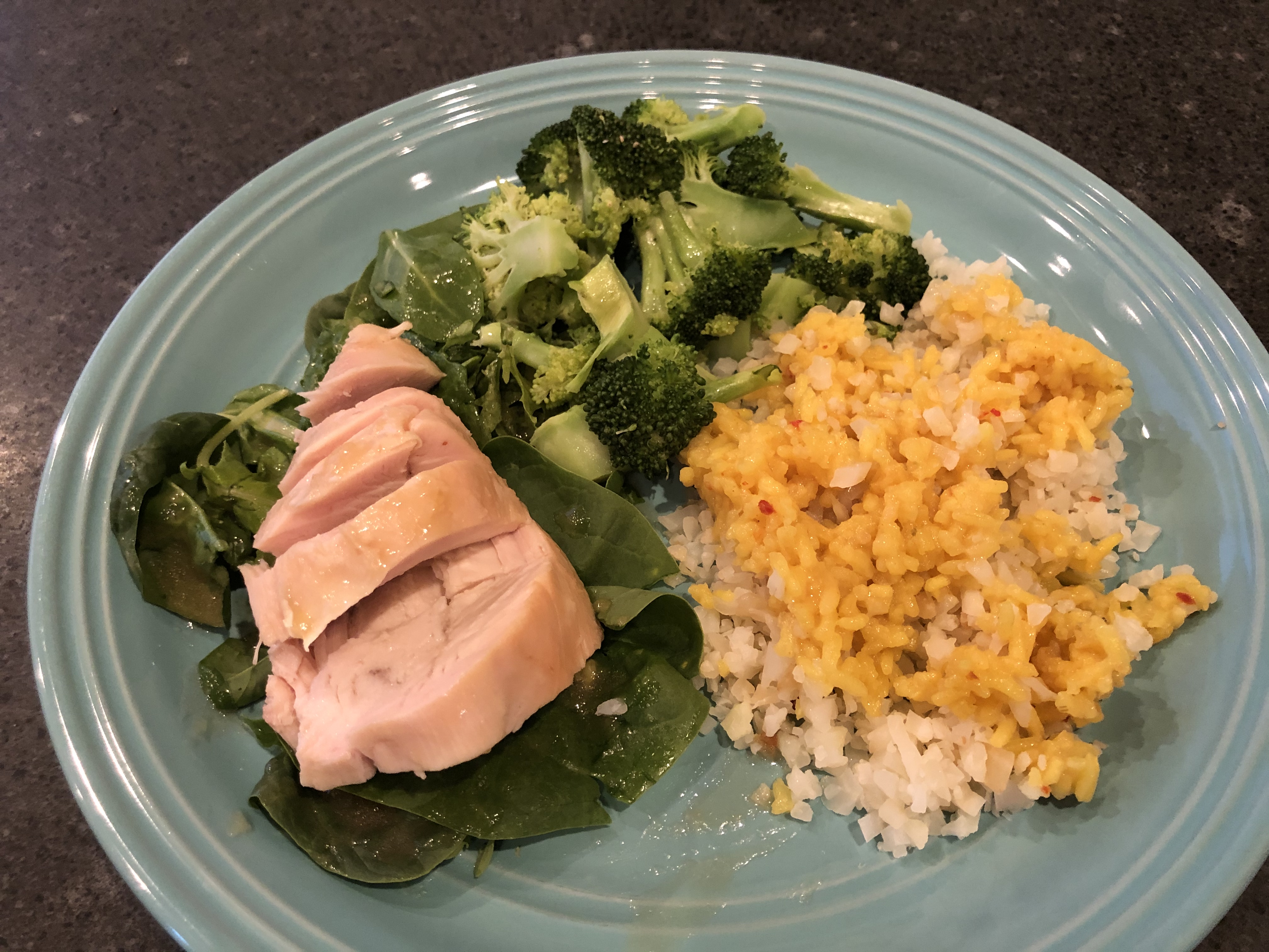 I just noticed that I skipped August 28th! My bad! Maybe I skipped it because we had a rather unimaginative meal of a Costco chicken with a mix of cauliflower rice and leftover yellow rice and the always available broccoli. It is hard to cook here in our away-from-home kitchen with its lackluster appliances and a shortage of our usual spices and ingredients so I guess I kind of phoned it in.