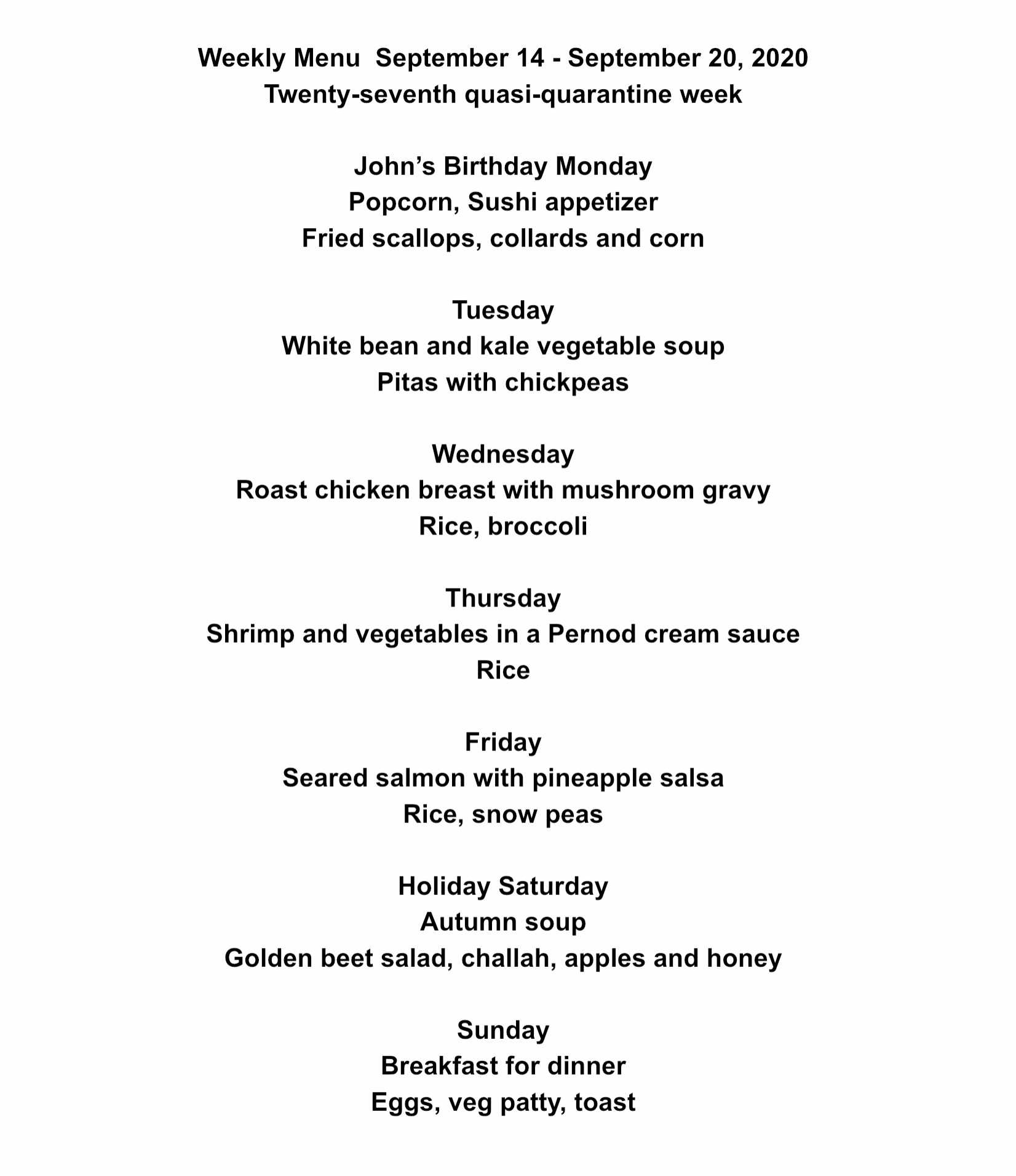 This week we are celebrating two special occasions, John’s birthday and Rosh Hashanah, the Jewish new year. Usually John and I would be going out to dinner with friends for his big day but not this year. We will cook at home and just enjoy each other’s company. On Saturday our son is coming over for a Jewish new year celebration with the three of us. We will eat some traditional foods and wish each other a healthy and prosperous new year.