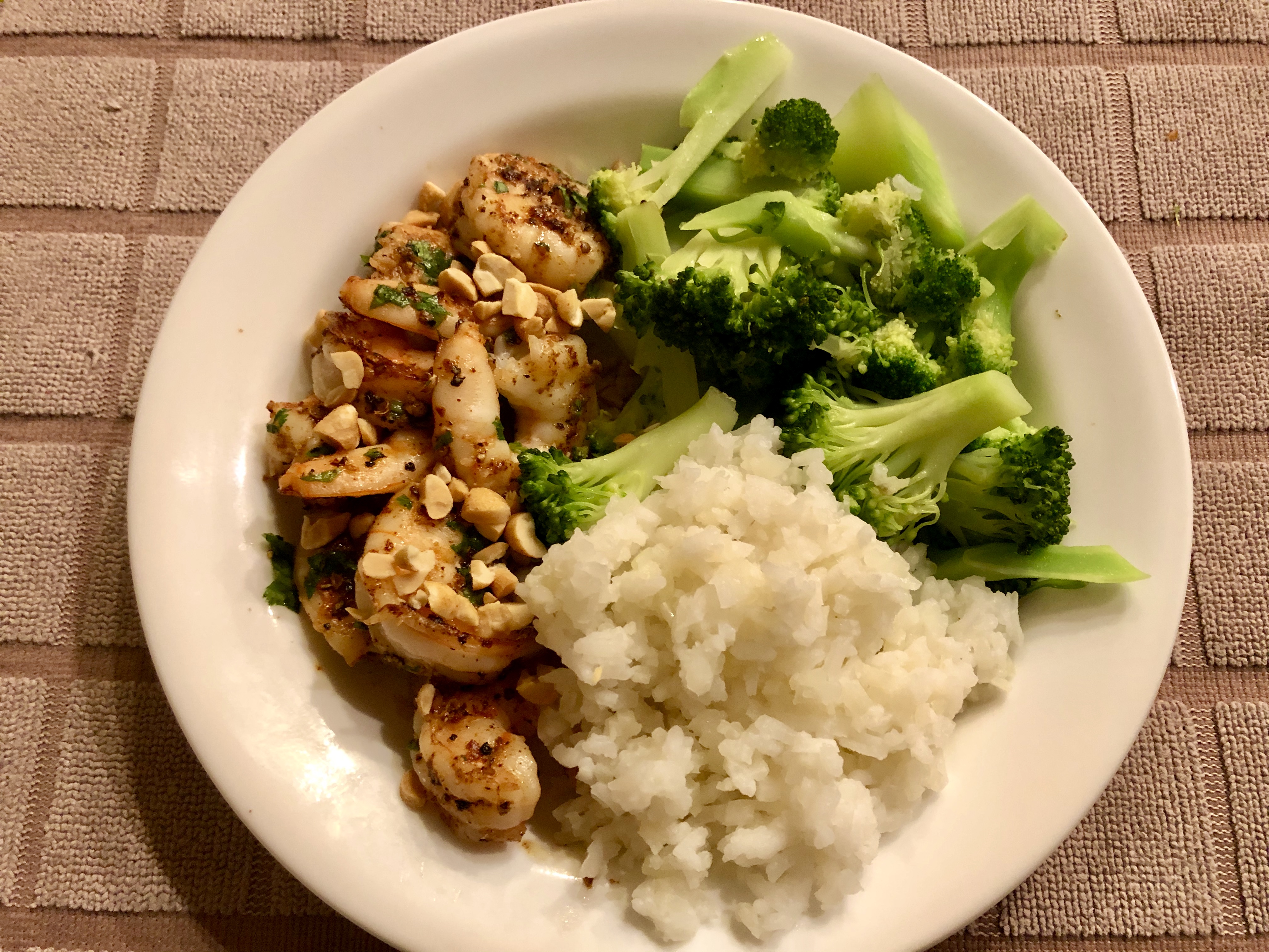 To me, the final dish was too black peppery but otherwise was great. I made some broccoli and my rice and cauliflower rice mix. Since I was low on rice I asked John if I could mix the cauliflower rice in his portion too. Later he said he did not even notice the cauliflower rice. This is a great way to cut rice calories and lighten the glycemic load.