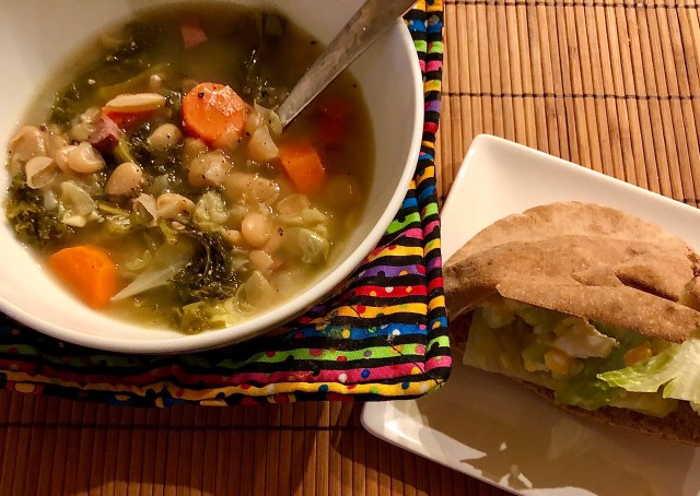 Luckily I was experimenting with a soup recipe earlier in the week and had plenty of this kale, cabbage, and white bean soup to serve for dinner tonight.