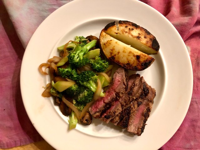 So of course we celebrated on Monday evening with a steak, baked potato, broccoli, and cake. And we started off with popcorn and wine. Now I have to eat sensibly for the rest of the week to get back to my goal weight! I am planning on eating plant-based meals until we leave for our little vacation.
