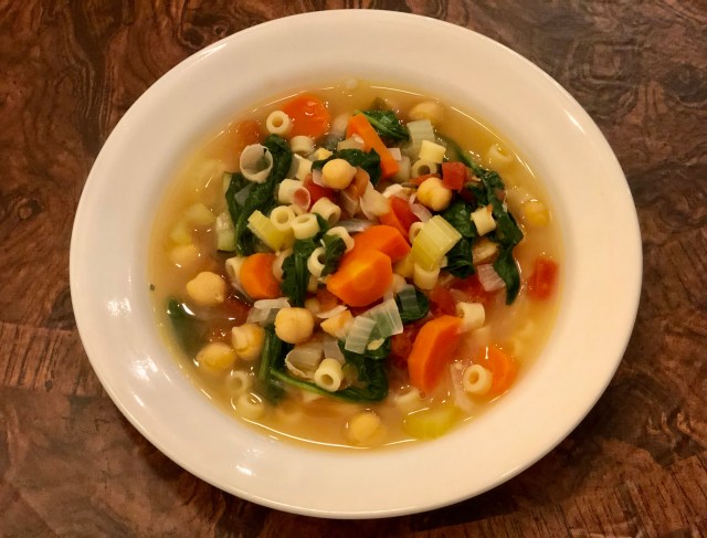 Before we left, though, we made a wonderful chickpea stew. It was full of vegetables, chickpeas, spinach, and small pasta. Totally vegan, I would be happy to eat this any night.