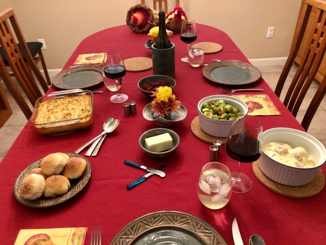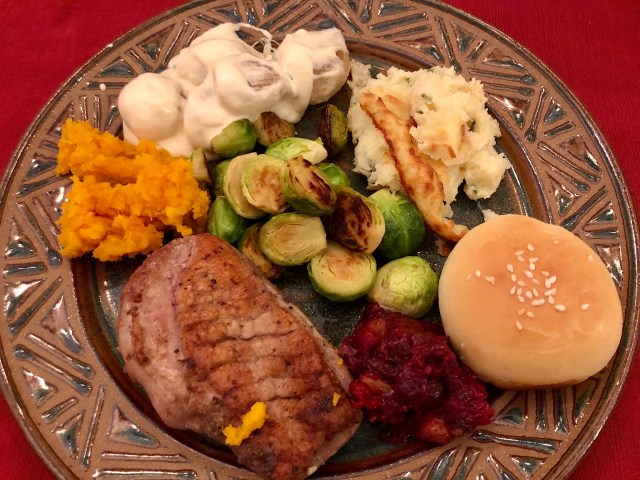 Although we were just three people (our household), we had a lovely Thanksgiving full of all the foods we like best. Of course, not having eaten rich foods for over a year, dining royally meant that I felt sick all night, slept little, and gained weight (but actually less than a pound.) Here is what we had—
