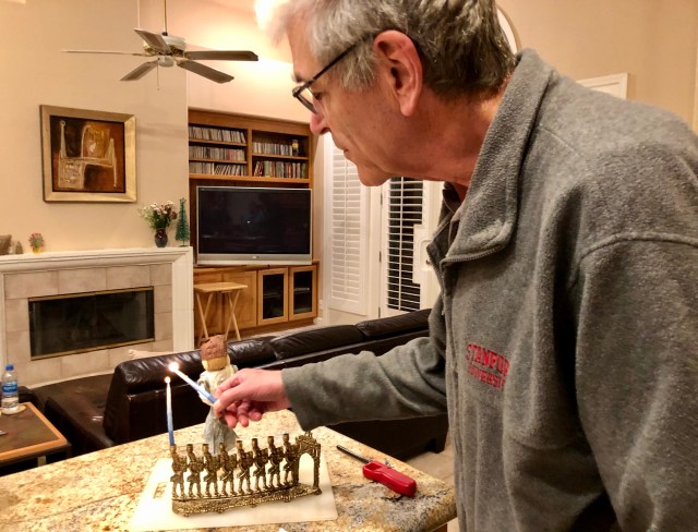 John lighting the candles and saying the blessing