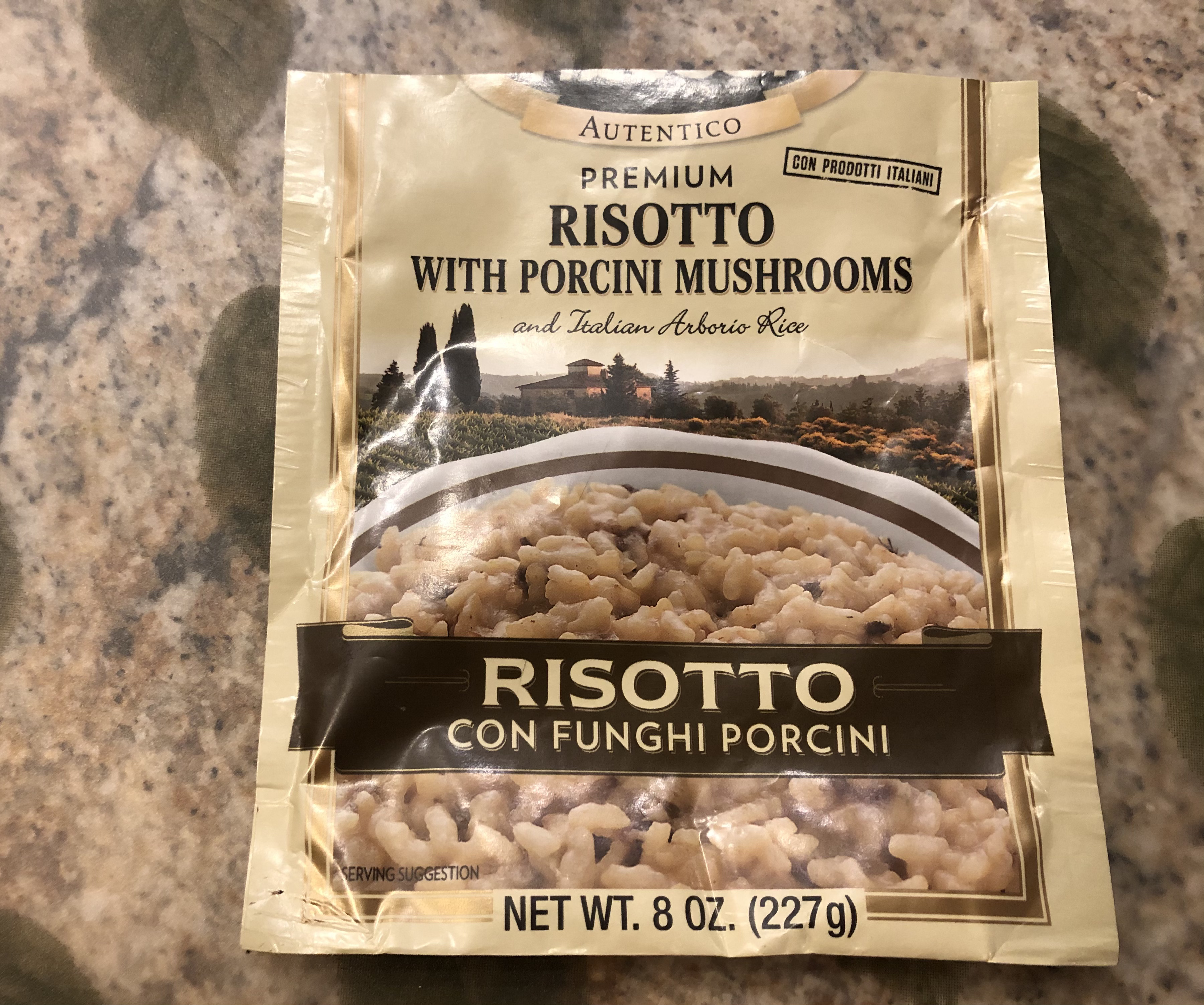 The risotto comes from a packet by Alessi and relieves you of standing and stirring. My sister sent it to me for my birthday. It is good although not quite like the real thing which I have eaten in Italy. Also it is kind of salty which means it must be very salty since I am a salt lover. We added additional mushrooms to the risotto and cooked it in lower sodium chicken stock instead of water.