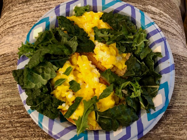 This is the kind of breakfast I eat most days. It consists of an egg or eggs and toast. I find the eggs keep me satisfied until lunch time. Other breakfasts I eat are plain non-fat Greek yogurt and blueberries over some cereal or oatmeal with fruit. I know it is all the rage to be fasting through breakfast but missing a meal does not appeal to me at all. I have lost over 60 lbs. eating three meals plus some snacks every day.