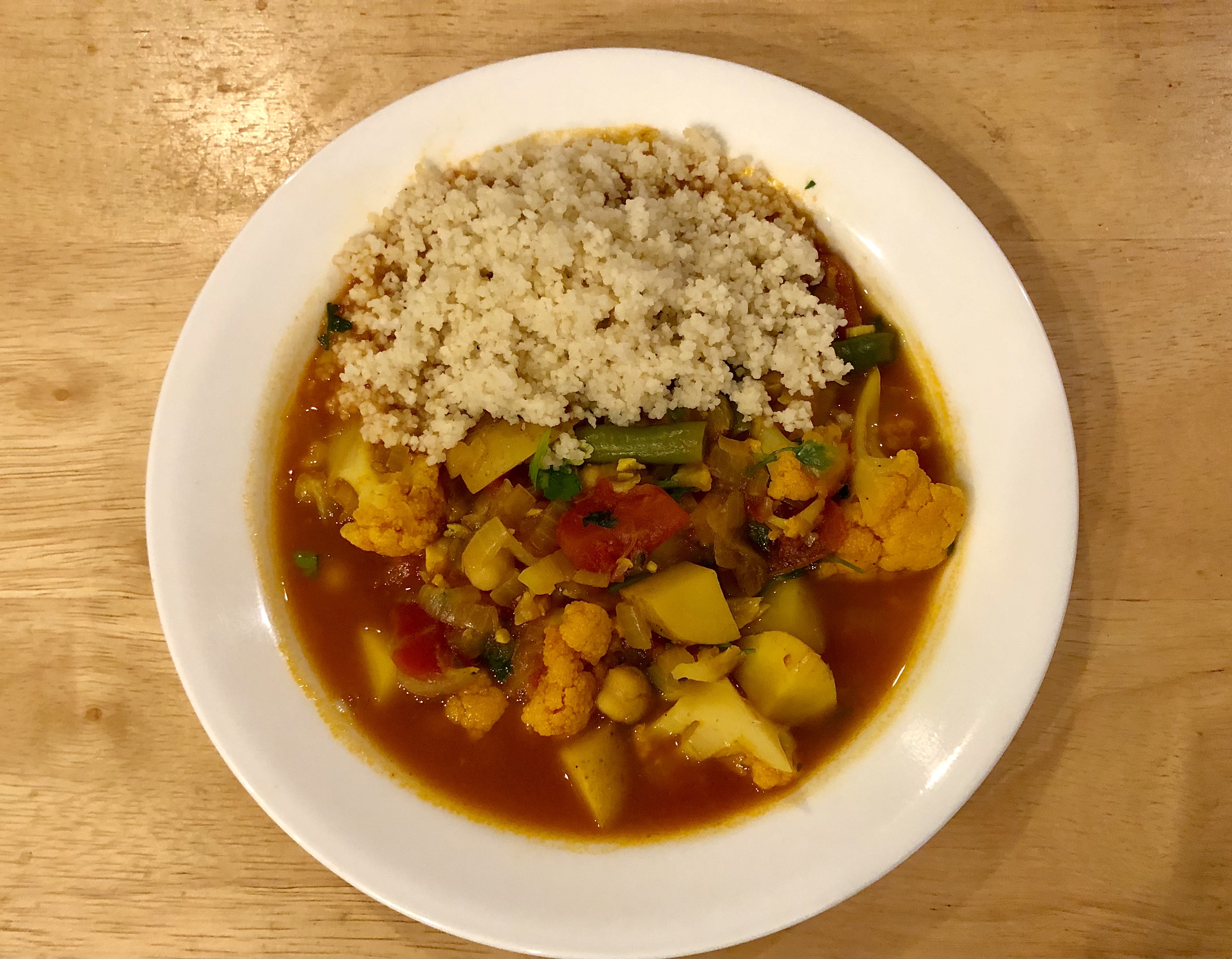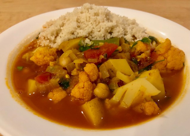 This past week’s winner of most views by a country was Algeria with 355 views. Dininglite.blog seems to be very popular in North Africa. Both Egypt, last week’s winner, and Algeria made strong showings. I decided to make a tagine which is a dish that is widespread in North Africa. The protein component is chickpeas. John and I made the tagine with a variety of vegetables and served it in the traditional manner with couscous.