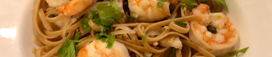 Light shrimp scampi with whole grain linguineSlight change in plans for dinner tonight. We were supposed to be having classic chicken but when we went in the freezer there was no chicken. So we made Friday’s dinner instead. You never have to twist my arm to eat pasta!