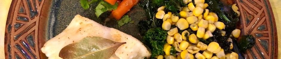 Since I am being careful with my diet this week due to overdoing it last week, I made two vegetables instead of a starch and a vegetable. After cooking some garlic separately and adding it back in at the end of cooking, I steamed the kale and corn in a little water. I did add a pinch of sugar and a tsp. of butter to help soften the bitterness of the kale.