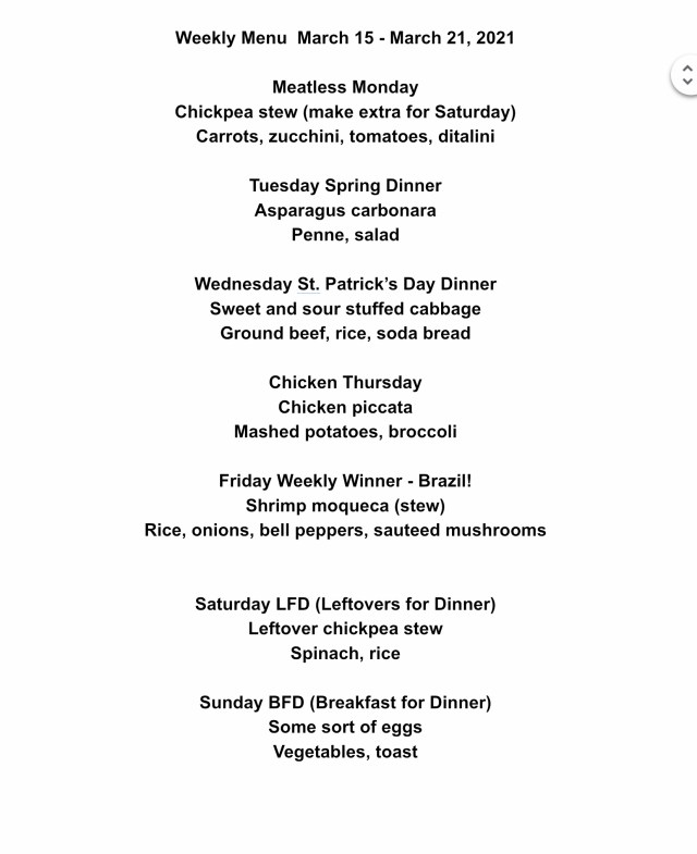 In other menu news, John and I are making stuffed cabbage for St. Patrick’s Day and some soda bread if our daughter makes it. As far as I can tell I am about 3/8 Irish. John is not Irish at all. I really did not want to make corned beef but I do like cabbage so we settled on the Eastern European dish. Maybe some Irish emigrated there during the Great Potato Famine?