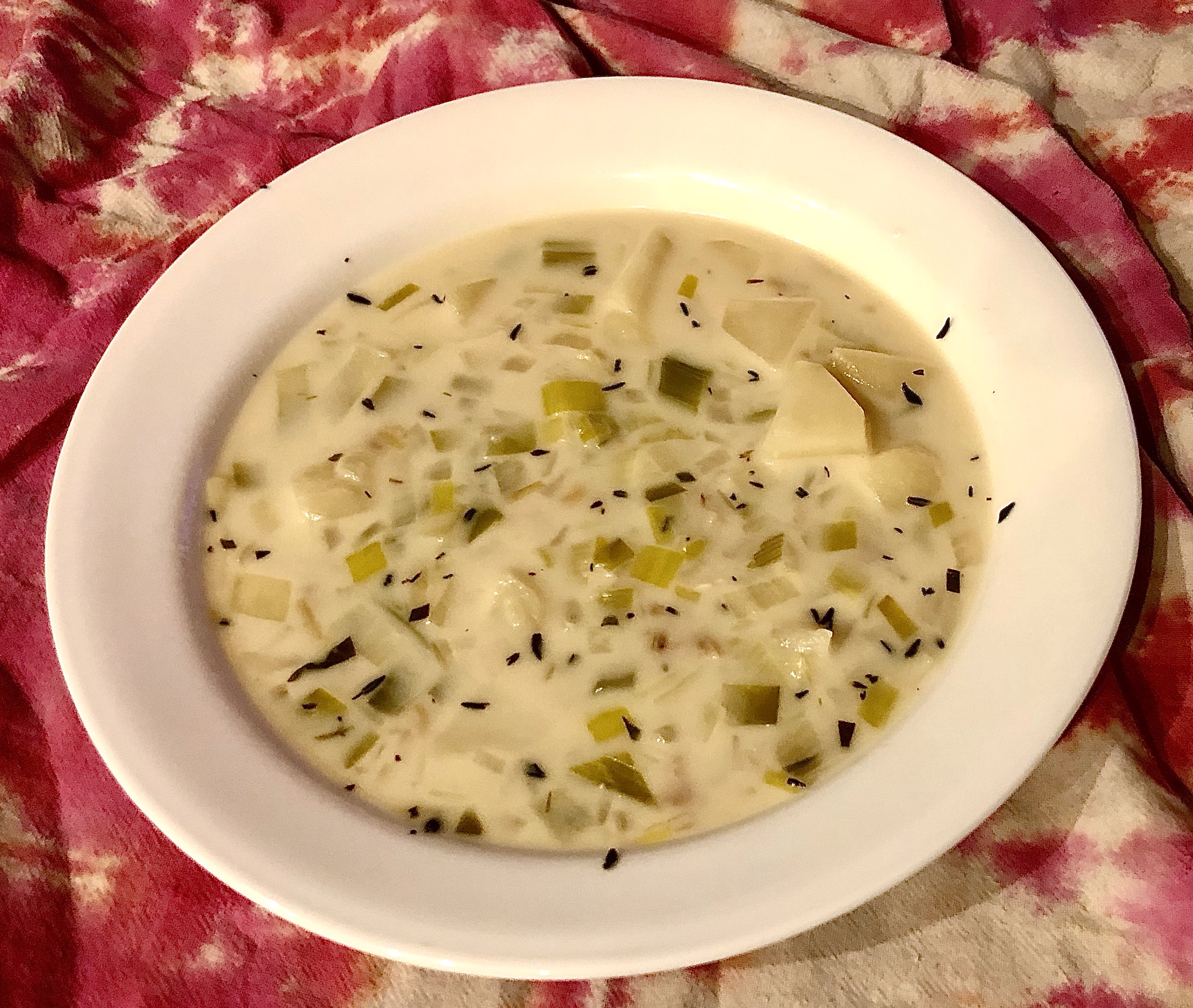 The hardest part to making this clam chowder is cleaning and cutting the leek. Leeks are notorious for trapping dirt between their leaves. I cut off the dark green parts first and then cut the leek into quarters lengthwise leaving … Continue reading Clam Chowder. 5/21/21