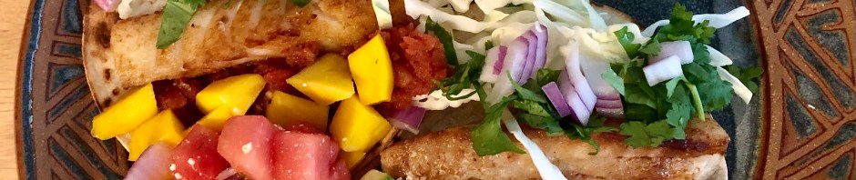 For Taco Tuesday John pan-roasted some Pacific cod with a dusting of spices, we heated up a can of black beans with some spicy salsa, and I cut up a mango and made a watermelon, mint, cucumber, red onion, and feta salad with a lime juice/olive oil dressing. Between the garnish of cilantro on the tacos and the mint in the salad, our dinner was kind of a Mexican-Greek combination. This was plenty of healthy food for a small investment of time and calories.