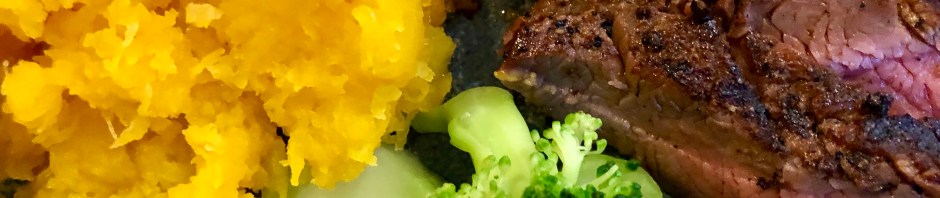 For my part I defrosted the butternut squash that I had cut up a week or so ago. You can freeze it raw. I steamed the squash for 10 minutes and then mashed it up with a teaspoon of butter. Check the salt level because this squash needs a lot of salt. Lastly I steamed the broccoli. Include the stems!